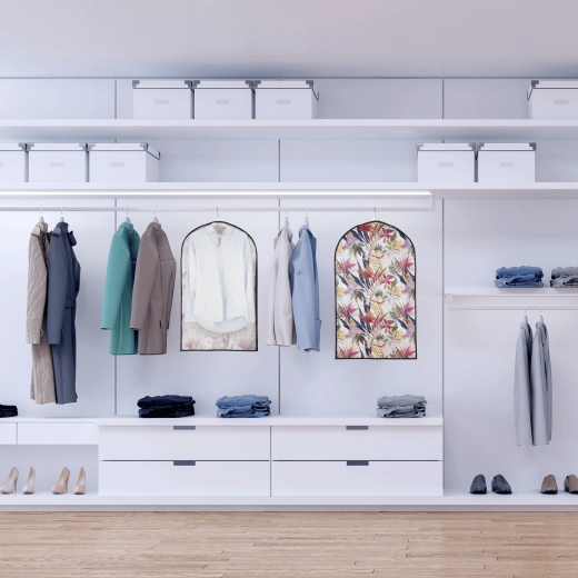 Okamžitě zjistíte, který oděv je uvnitř, bez nutnosti obal rozepínat. Šetří čas a udržuje pořádek v šatníku.