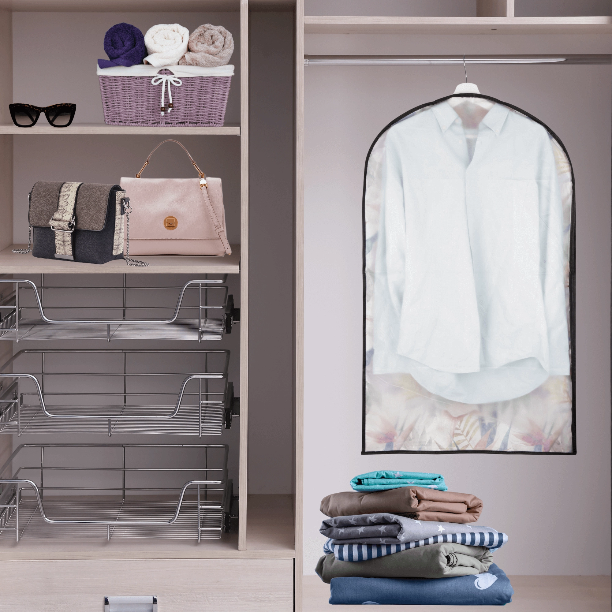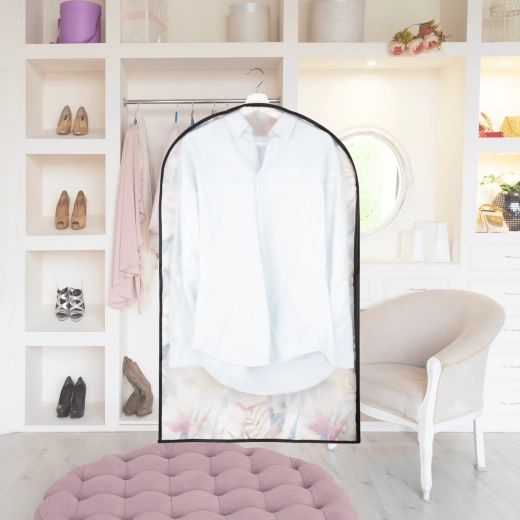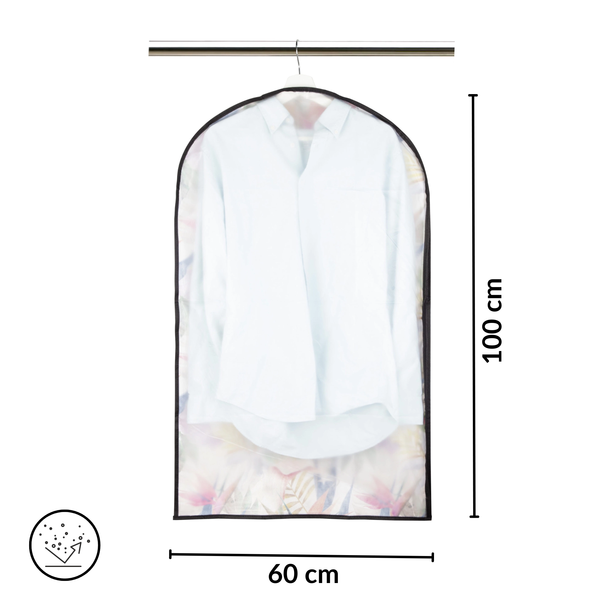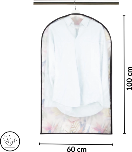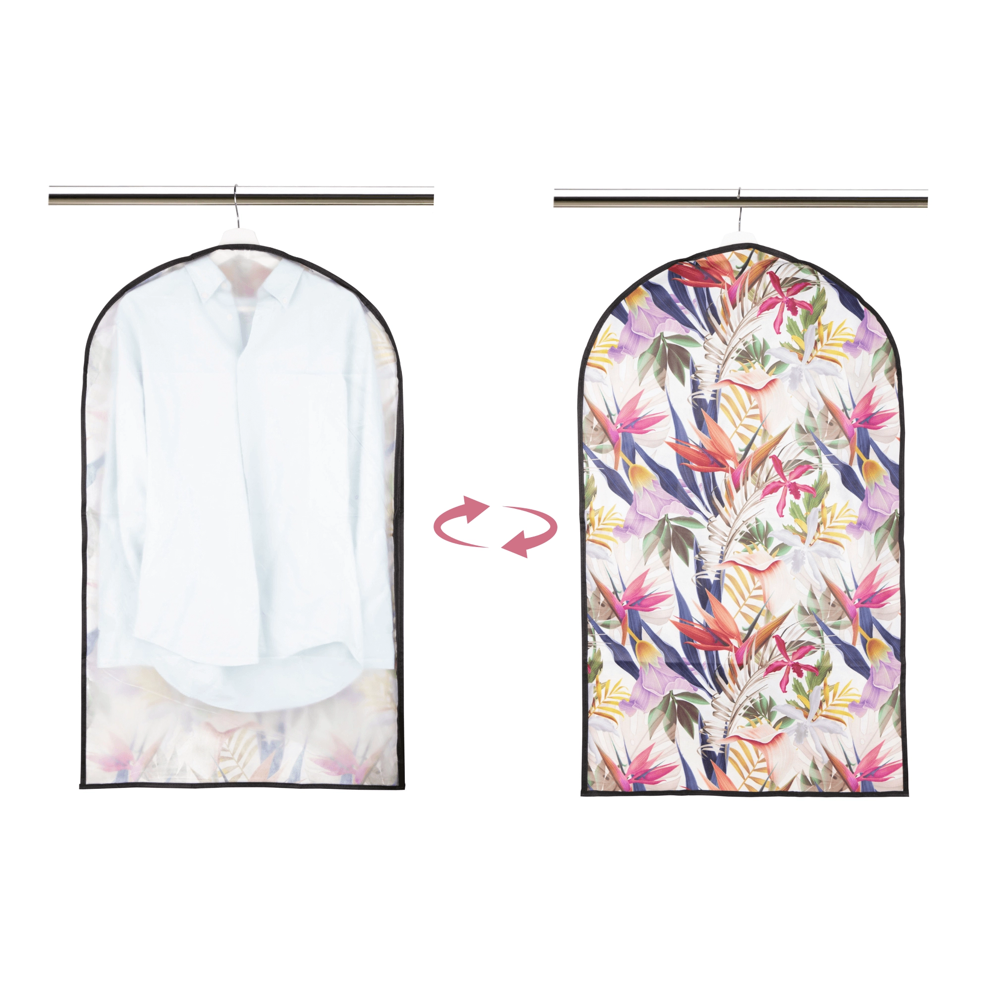 Tento stylový obal na oblečení chrání vaše oděvy před prachem, nečistotami a oděrkami a současně dodá šatníku svěží, dekorativní vzhled. Díky průhlednému panelu okamžitě vidíte, co je uvnitř, a bočnímu zipu obal pohodlně otevřete i v plném šatníku.