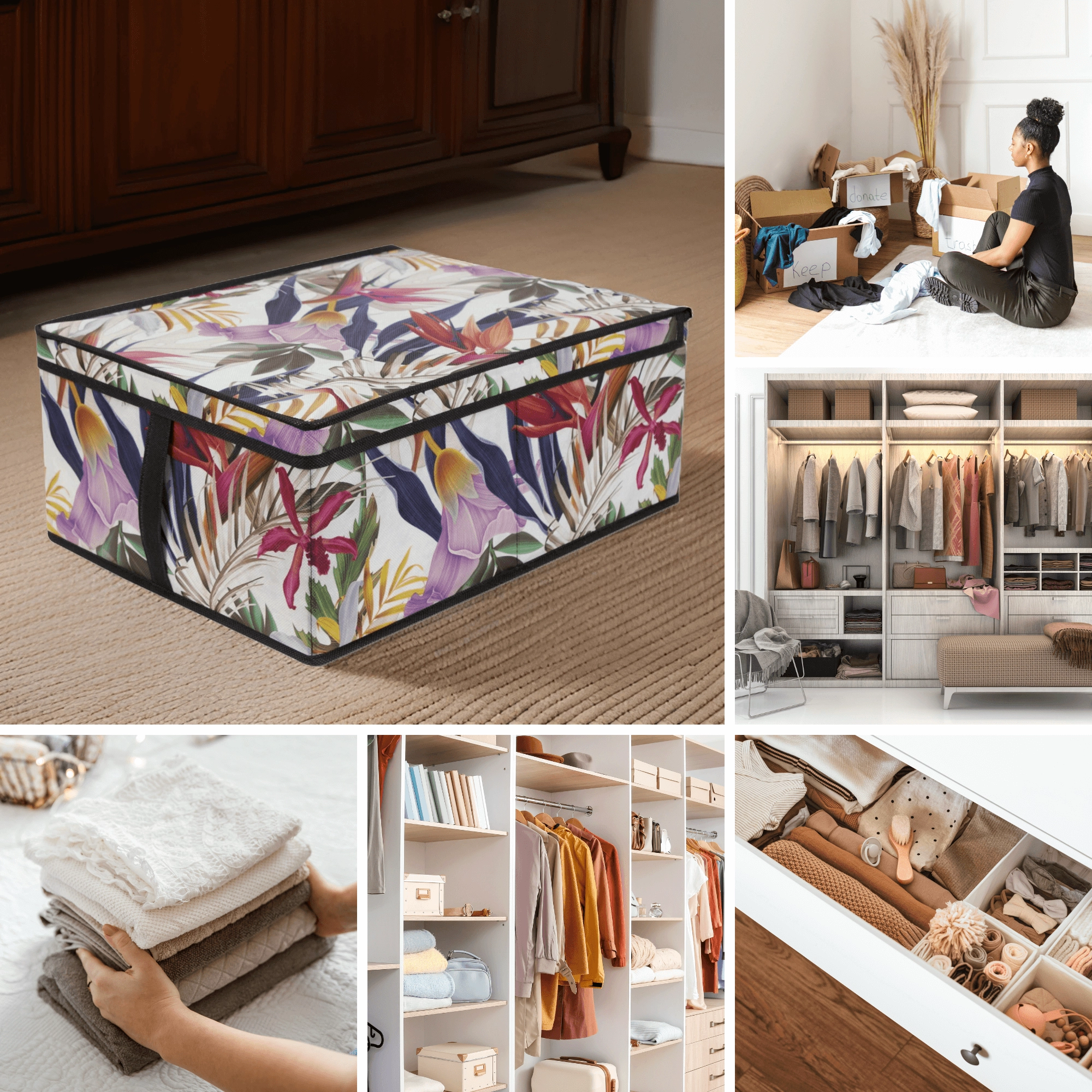 Box je ideální na sezónní textil, doplňky, hračky i lůžkoviny. Když ho nepotřebujete, jednoduše ho složíte a uložíte – ušetříte tak cenné místo ve skříni nebo pod postelí.