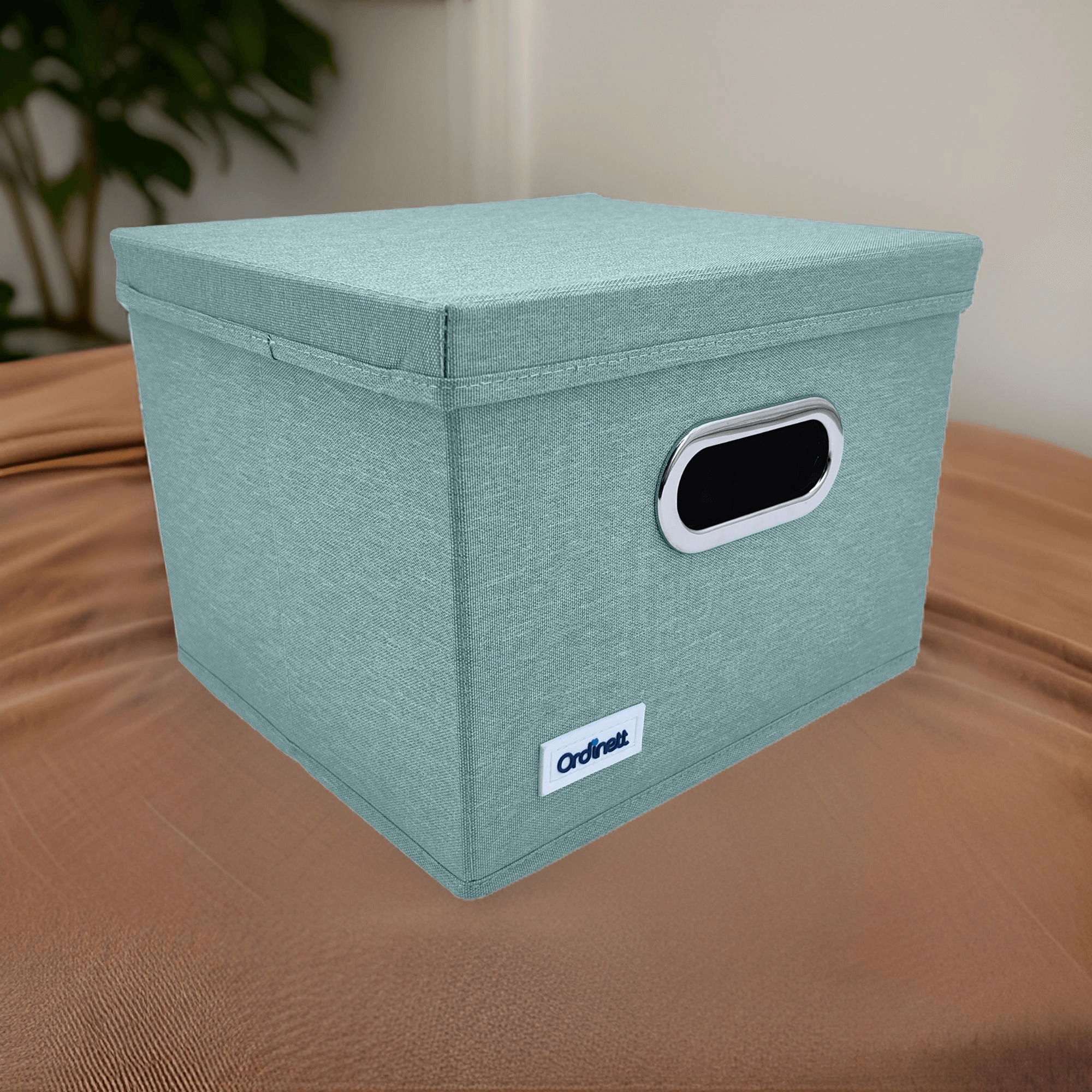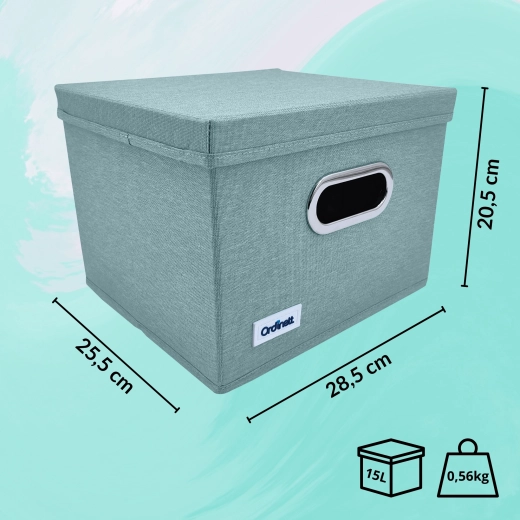 Textilní úložný box s víkem, mátový 28,5 × 25,5 × 20,5 cm