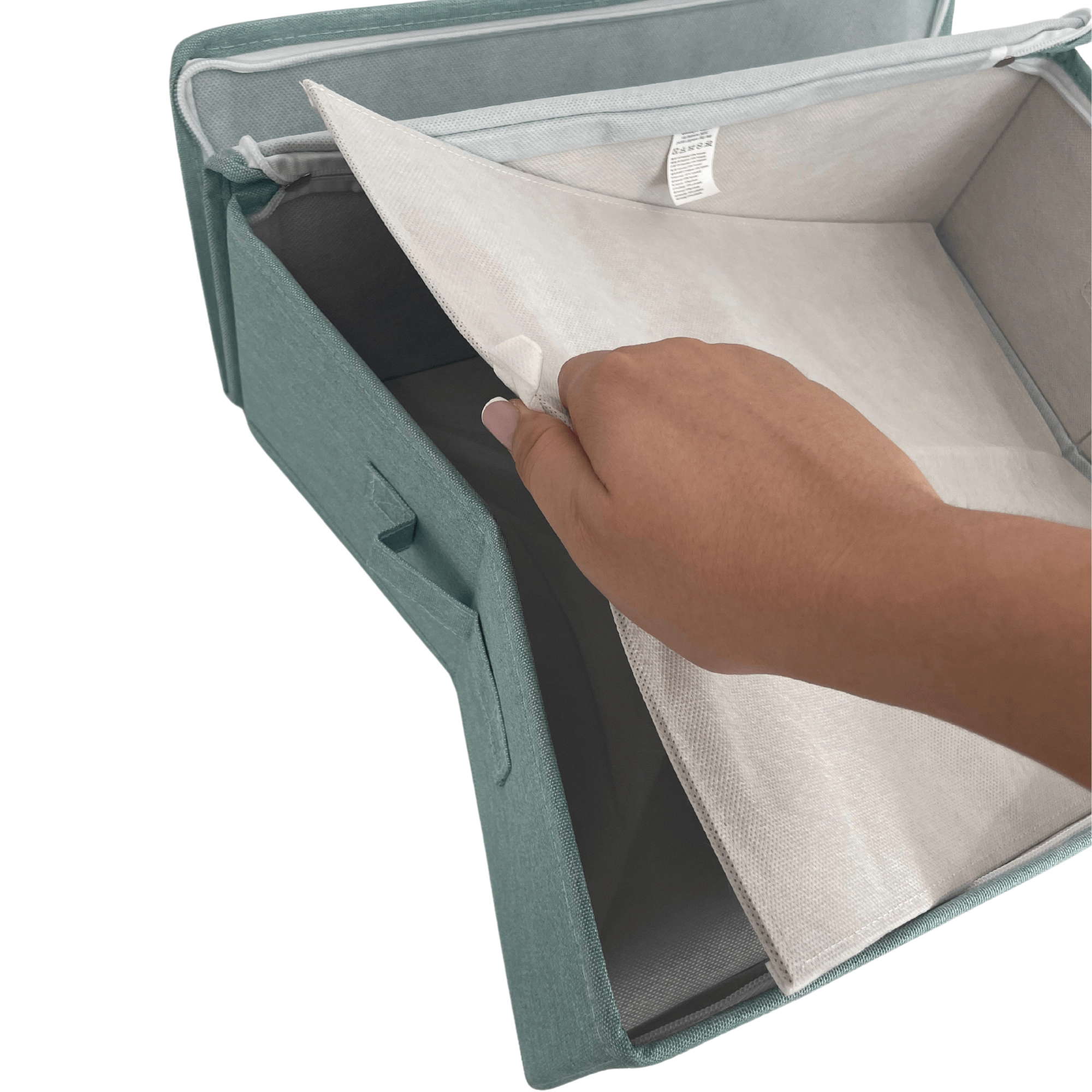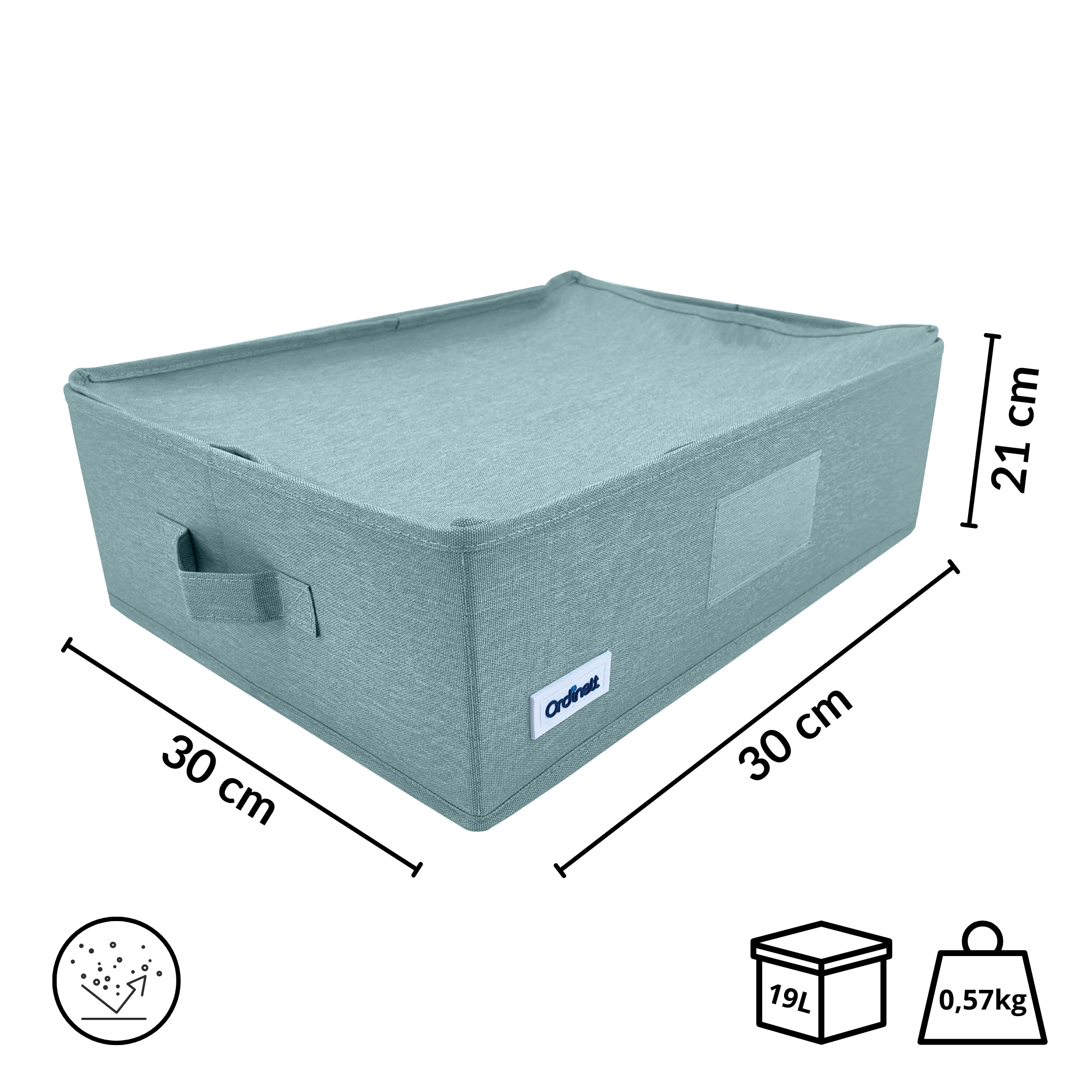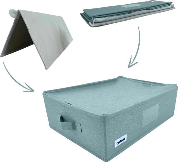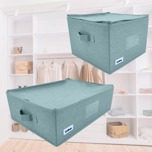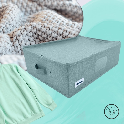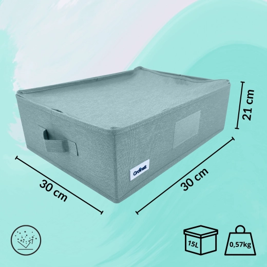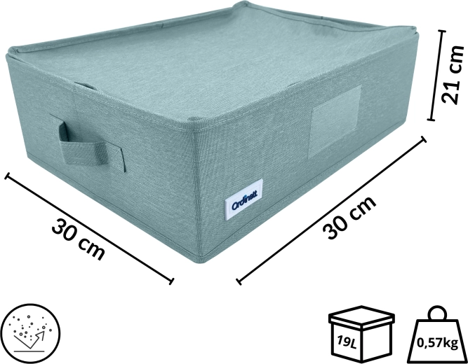Udělejte pořádek ve skříni během chvilky. Tento mátově zelený textilní box s víkem a bočními úchyty nabízí praktičtější organizaci, ochranu proti prachu díky zipu a skládací konstrukci pro úsporu místa. Ideální na oblečení, prádlo, doplňky i dokumenty.