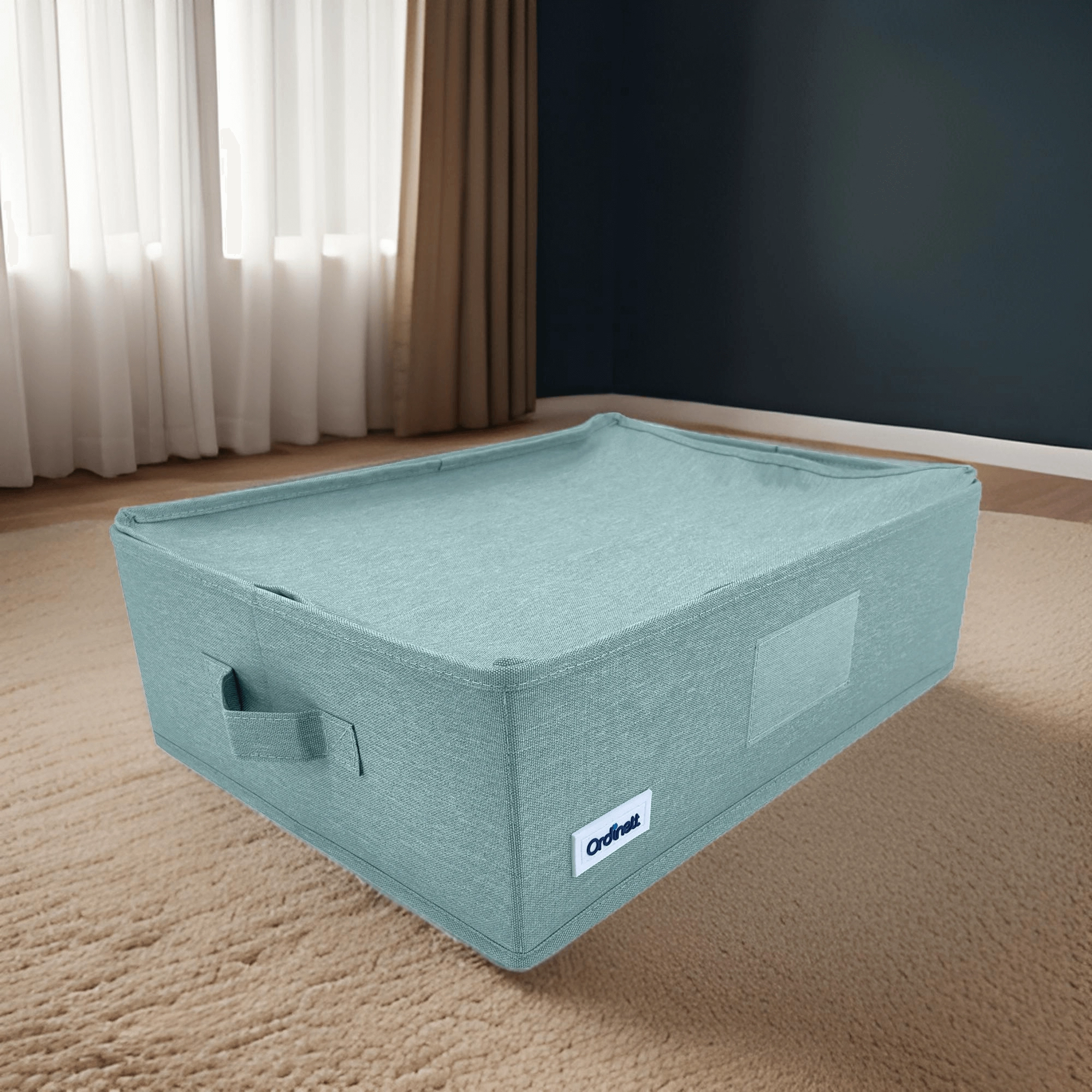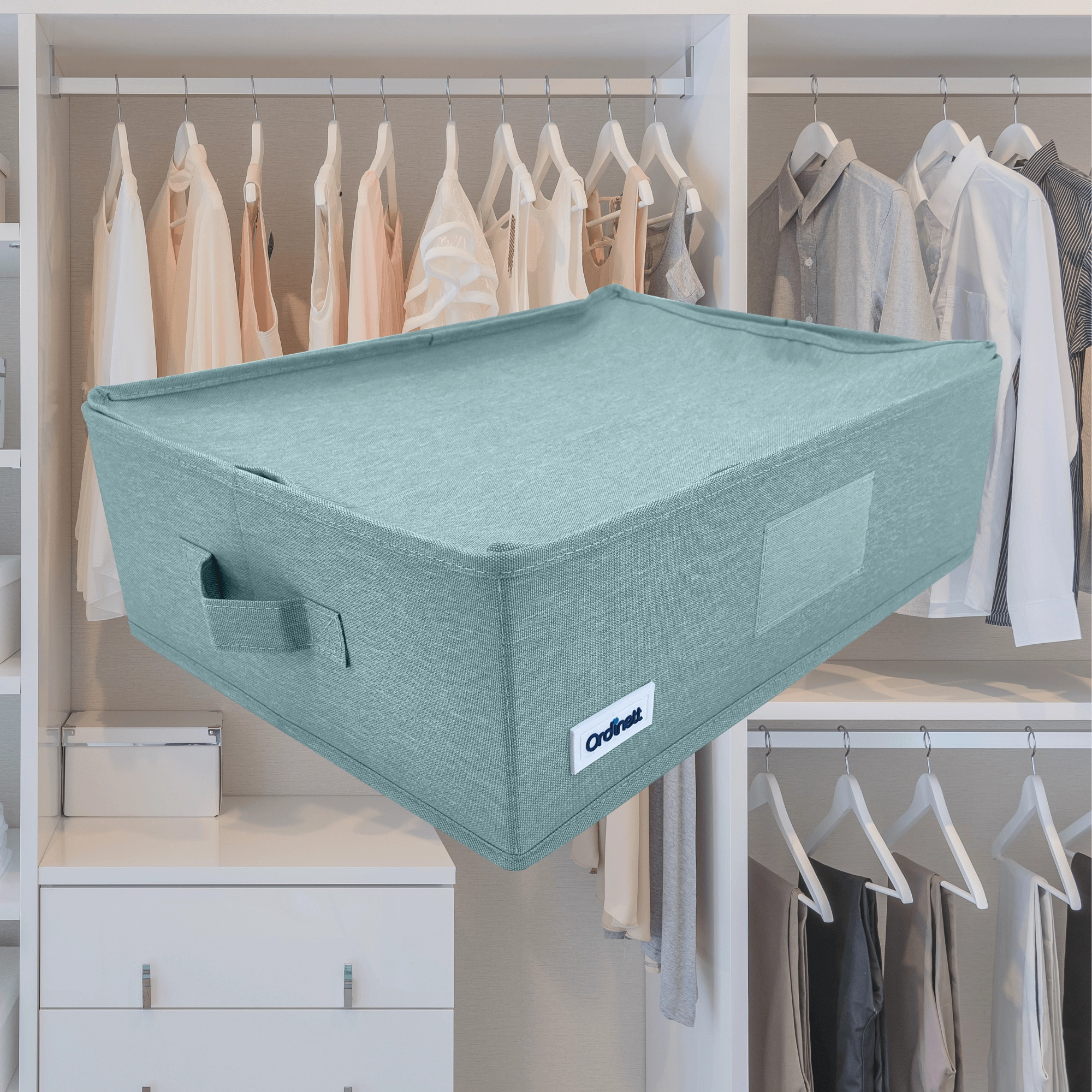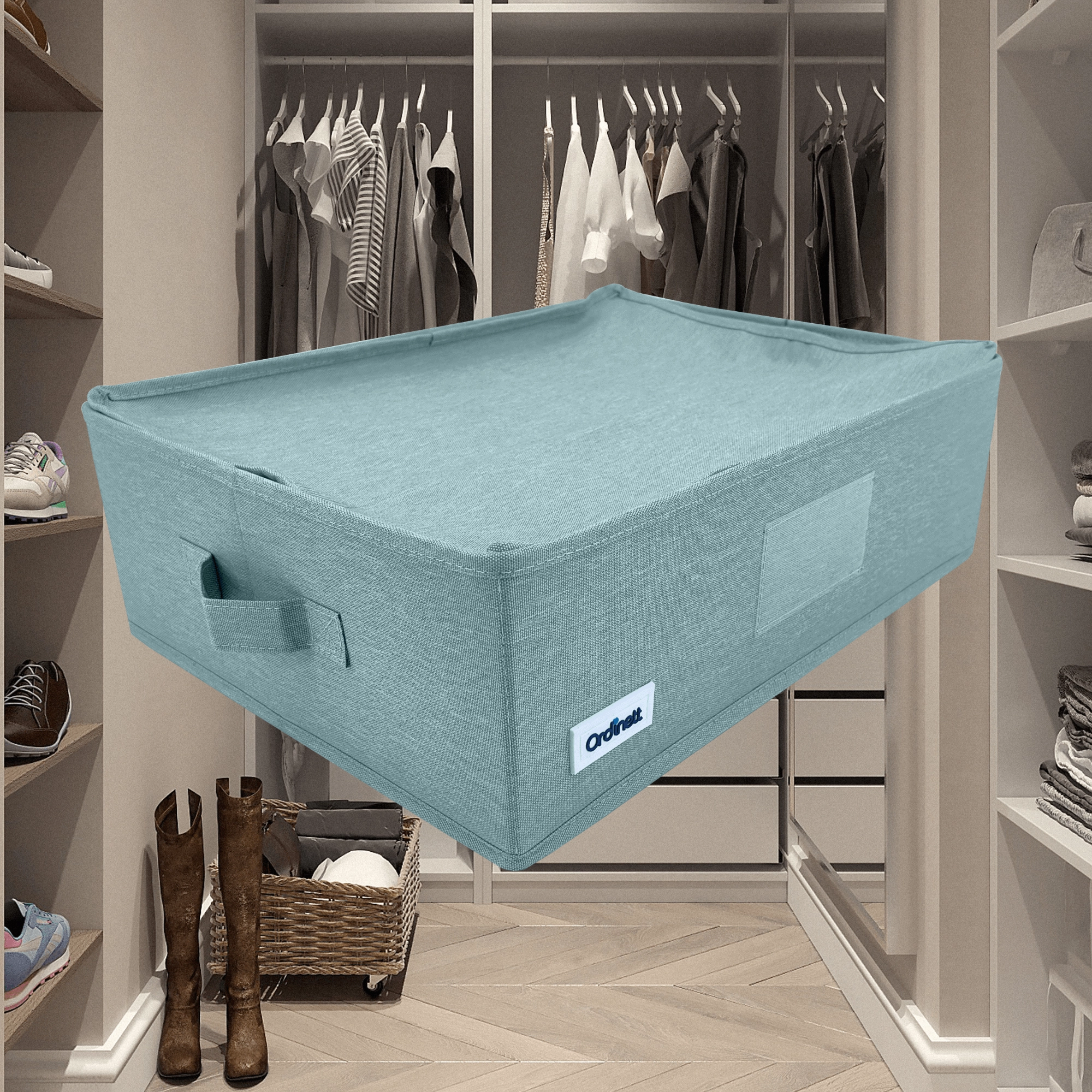 Udělejte pořádek ve skříni během chvilky. Tento mátově zelený textilní box s víkem a bočními úchyty nabízí praktičtější organizaci, ochranu proti prachu díky zipu a skládací konstrukci pro úsporu místa. Ideální na oblečení, prádlo, doplňky i dokumenty.