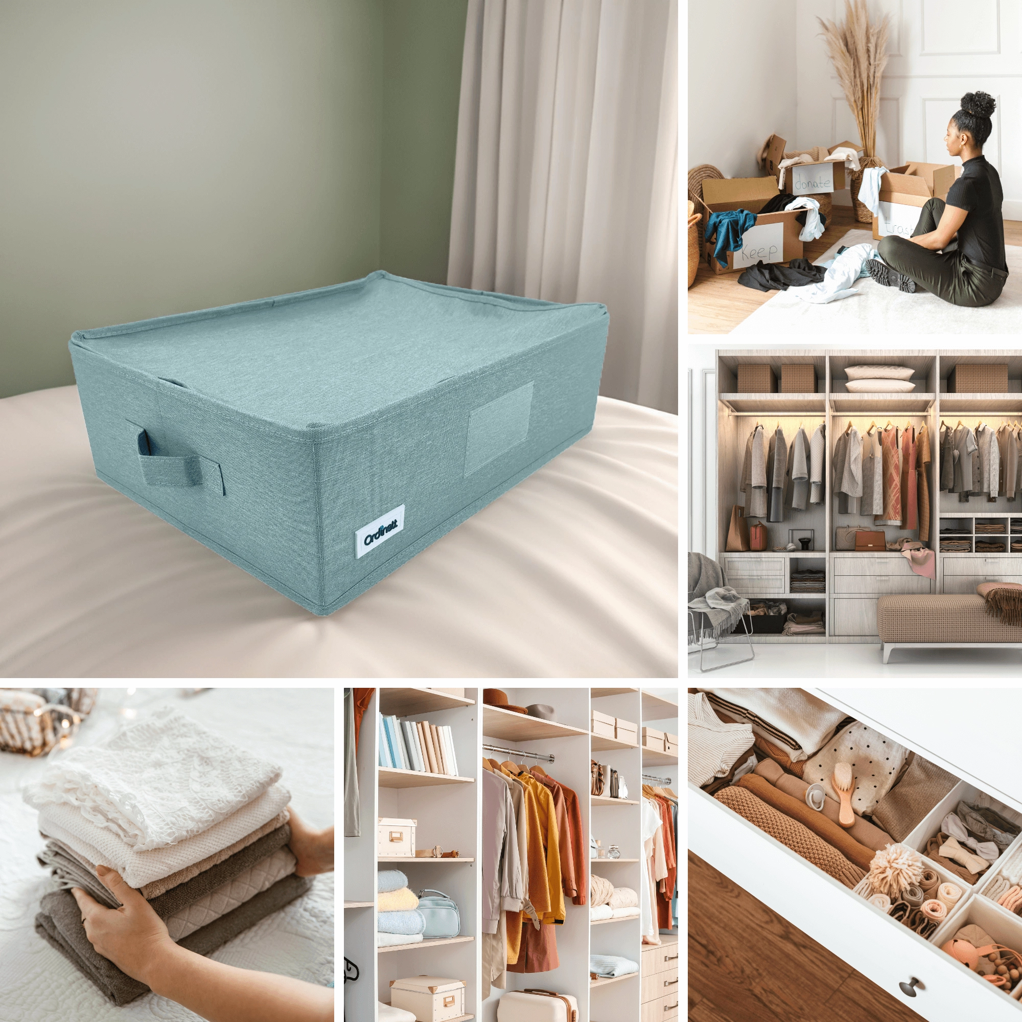 Obsah zůstává čistý a bez prachu – ideální pro sezónní oblečení, prádlo i doplňky.