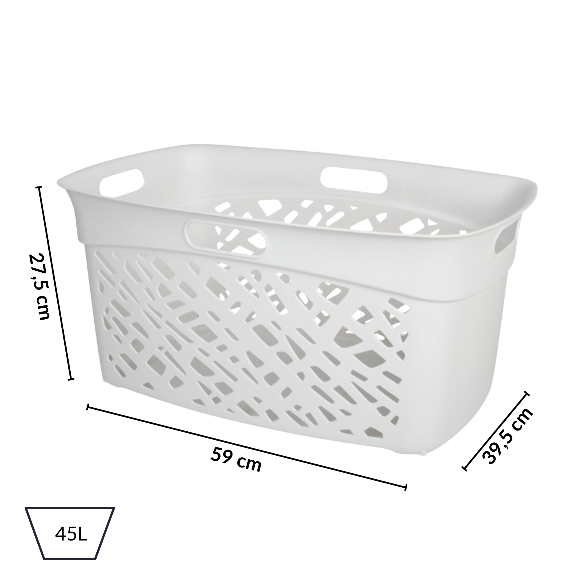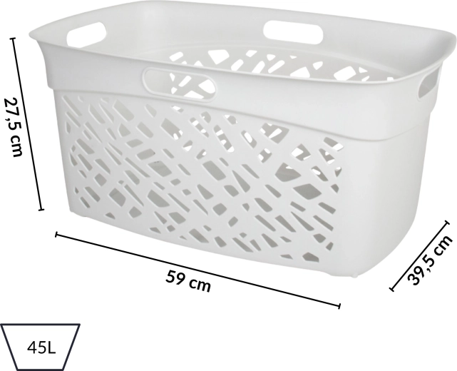 Koš na prádlo ALMERIA 45 l je stylové a funkční řešení pro každodenní třídění a přenášení prádla. Asymetrická perforace zajišťuje proudění vzduchu, které omezuje vlhkost a pachy, zatímco čisté linie snadno zapadnou do moderních i klasických interiérů.