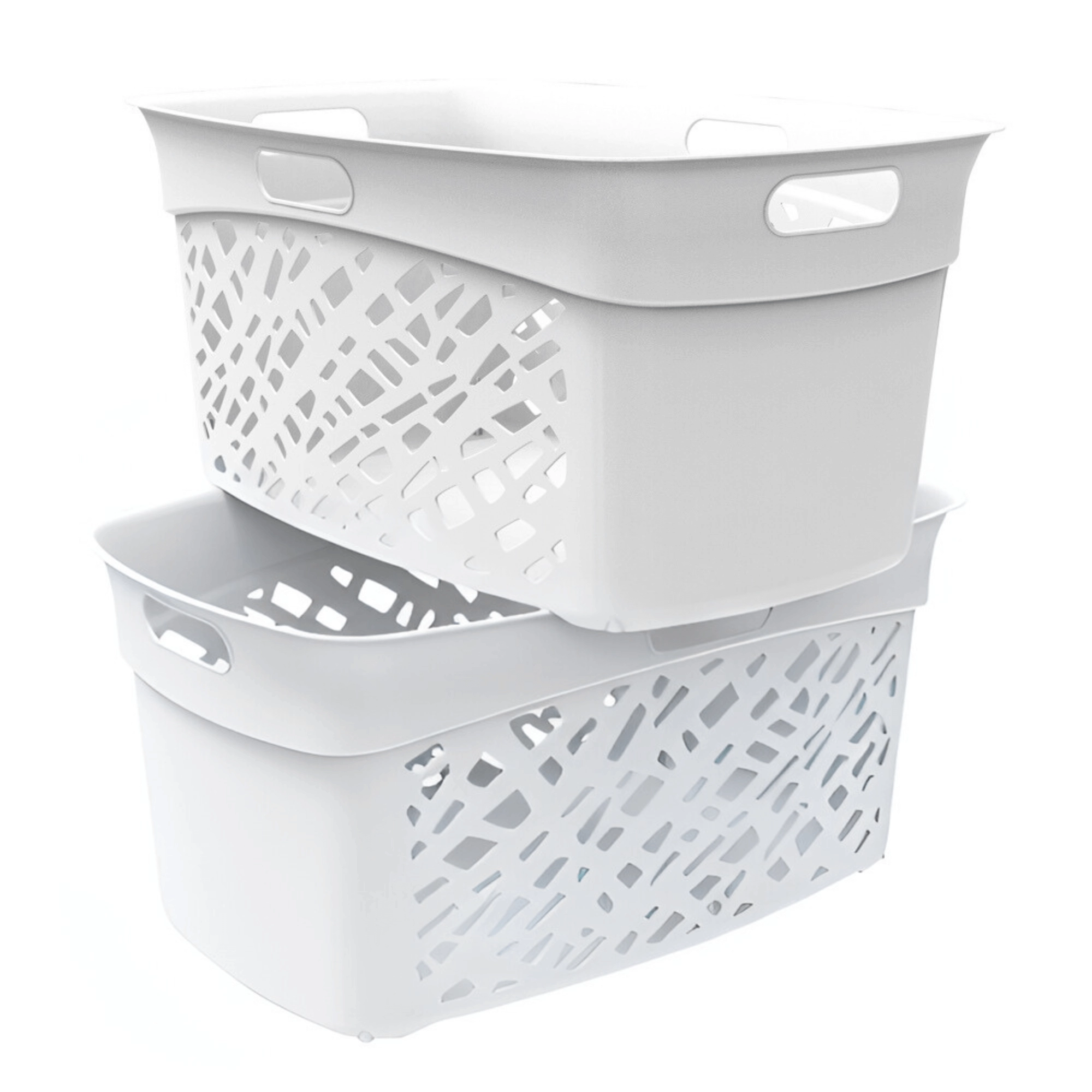 Speciální tvar umožňuje ukládat koše na sebe. Ideální řešení do koupelen a prádelen s omezeným prostorem.