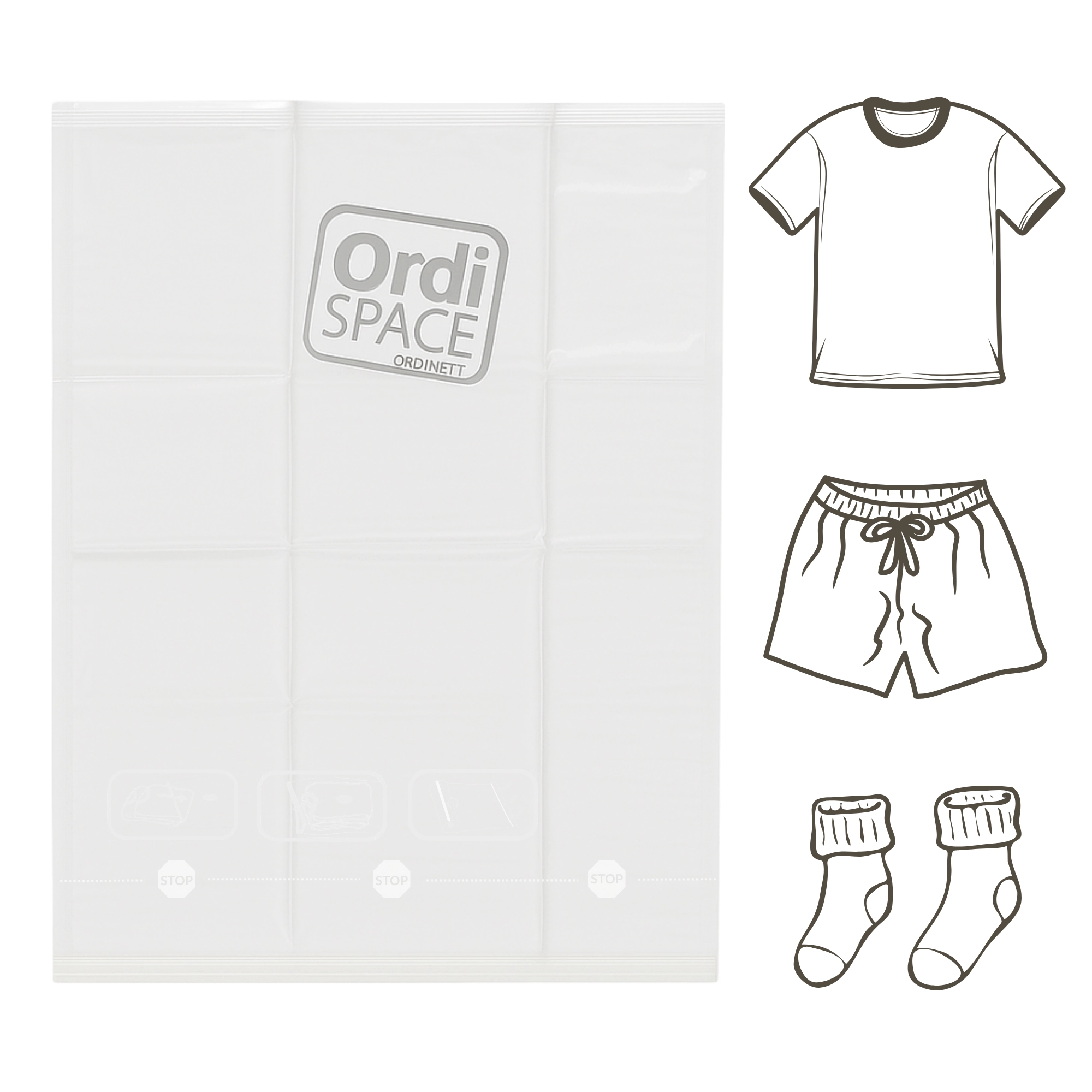 Výborně se hodí do kufrů, skříní a úložných boxů. Odolný materiál PE je voděodolný a vhodný pro opakované použití, takže oděvy zůstanou čisté, suché a bez nepříjemných pachů.