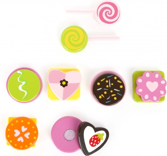 Objevte kouzlo sladkého hraní s pestrou sadou dřevěných pochoutek SMALL FOOT. Lízátka, sušenky a pralinky jsou vyrobeny ze 100% certifikovaného FSC dřeva a díky pevným suchým zipům je děti mohou znovu a znovu rozdělovat a spojovat. Realistické doplňky promění každou dětskou kuchyňku v kreativní cukrárnu.