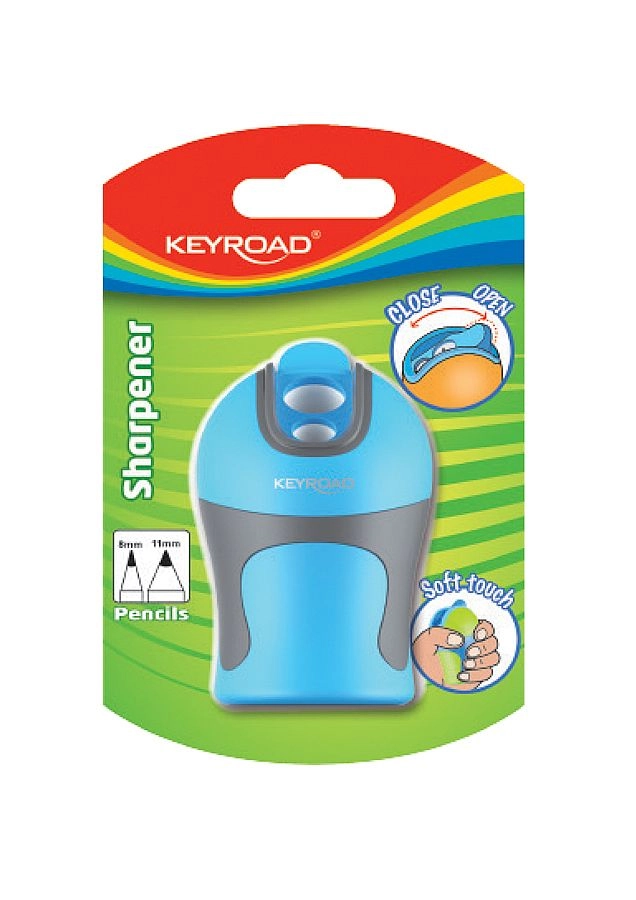 Ořezávátko KEYROAD je spolehlivá volba pro školu, kancelář i domácnost. Díky otevíracímu designu a velkokapacitnímu zásobníku zůstane pracovní plocha čistá a ořezávání bude rychlé a bez nepořádku. Dva přesně broušené otvory o průměrech 8 mm a 11 mm zvládnou standardní i silnější grafitové tužky.