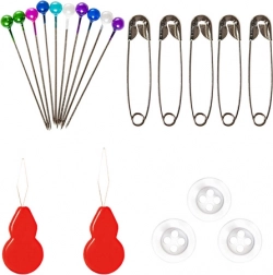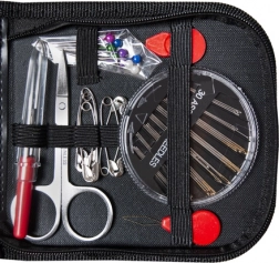Obsahuje nejdůležitější pomůcky jako je měřicí páska, nůžky, jehly a špendlíky, ideální pro rychlé opravy a kreativní projekty.