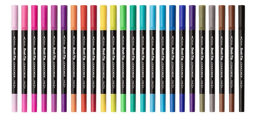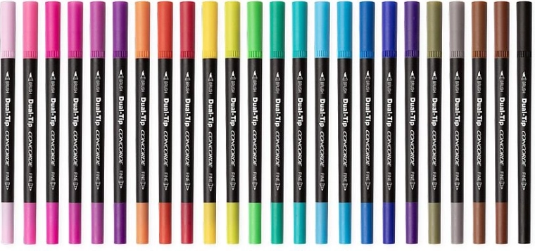 Sada popisovačů CONCORDE Dual‑Tip kombinuje přesnost finelineru a kreativní možnosti štětcového hrotu. Díky dvěma průměrům hrotů zvládnete jemné kontury, lettering, skicování i vybarvování velkých ploch. 24 pečlivě vybraných odstínů poskytuje širokou paletu pro ilustrace, poznámky i bullet journal.