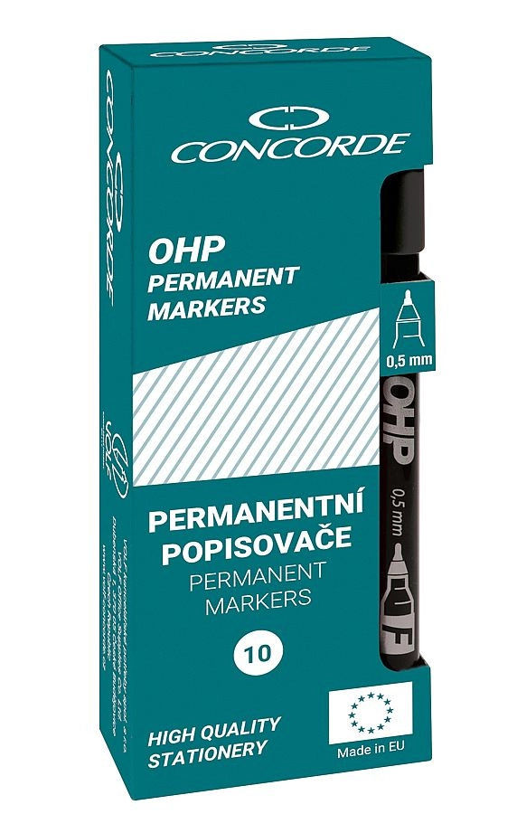 Permanentní popisovač CONCORDE OHP M je ideální volbou pro kancelář, školu i dílnu. Díky inkoustu na bázi lihu vytváří neprůhlednou, odolnou a rychleschnoucí stopu, která skvěle drží na hladkých i porézních površích. Střední šířka hrotu M 1–1,5 mm zajišťuje čitelné a profesionální značení.