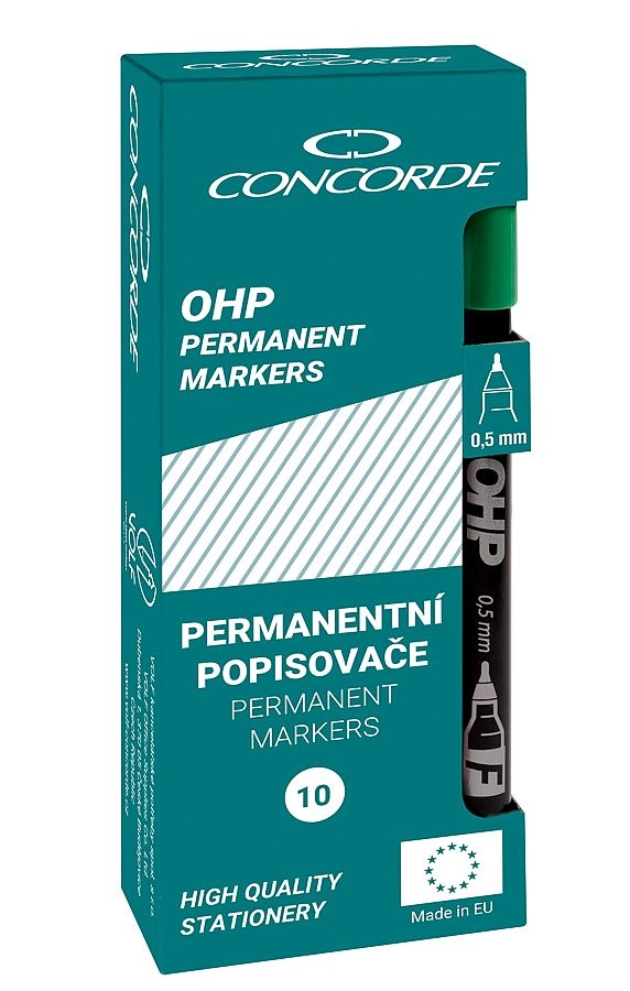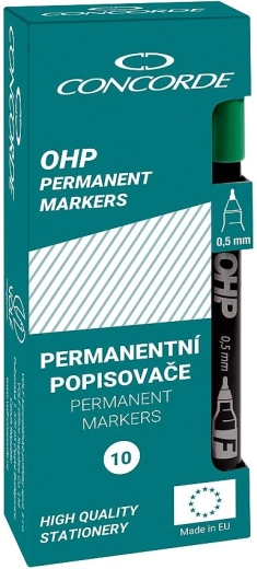 Popisovač Concorde OHP M je spolehlivá volba pro kancelář, školu i dílnu. Díky permanentnímu inkoustu na bázi lihu vytváří neprůhledné, odolné a dlouhotrvající nápisy na hladkých i porézních materiálech.