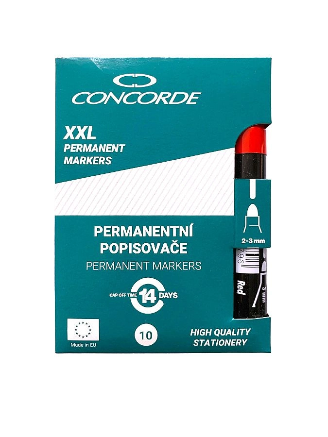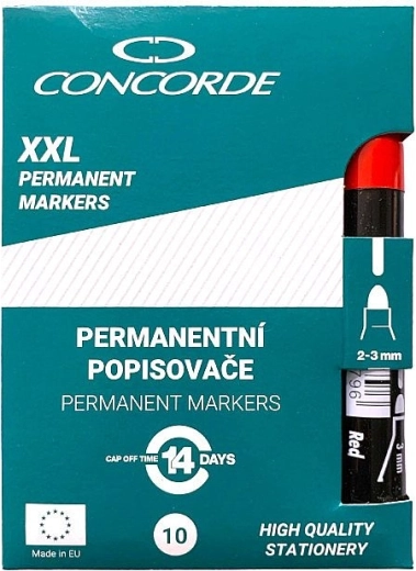 Permanentní popisovač CONCORDE poskytuje spolehlivý a sytý zápis na široké škále povrchů. Neprůhledný lihový inkoust rychle zasychá, je odolný vůči vodě a běžnému opotřebení, takže vaše poznámky a značení zůstanou dlouhodobě čitelné.