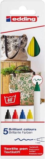 Objevte kreativní svobodu s popisovači na textil Edding 4600 v praktické sadě 5 základních barev. Ideální pro psaní, kreslení a zdobení světlých textilií, jako je bavlna, hedvábí a len. Inkoust na vodní bázi má neutrální vůni, je rychleschnoucí a světlostálý. Kulatý hrot se šířkou stopy 1 mm zajistí precizní výsledky na tričkách, povlacích, pytlících i krabicích potažených látkou.