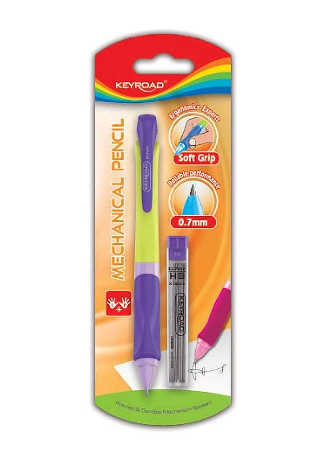 Stylová mechanická tužka s měkčeným úchopem pro pohodlné psaní, spolehlivým mechanismem a šířkou hrotu 0,7 mm. V balení najdete i etui s náhradními tuhami. Vhodná pro praváky i leváky, dodávána ve fialové barvě.