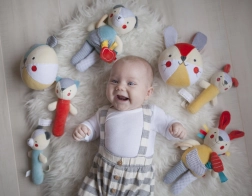 Tato měkká, ručně vyráběná liška je ideálním společníkem pro miminka od narození. Díky kompaktním rozměrům se pohodlně vejde do malých dětských ručiček, píská a jemně chrastí, čímž podněcuje smyslové vnímání a koordinační dovednosti.