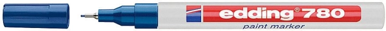 Modrý lakový popisovač edding 780 je ideální pro jemné psaní, vybarvování a značení na kov, sklo, plast, gumu, dřevo, kámen, keramiku i papír – skvěle kryje zejména tmavé a průsvitné povrchy. Díky rychleschnoucímu, voděodolnému a stálému inkoustu zůstává stopa čistá a trvanlivá i v náročných podmínkách.
