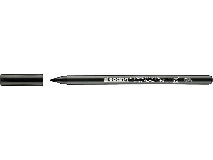 Černý popisovač na porcelán edding 4200 je ideální pro kreativní zdobení hrnků, talířů a dekorací z porcelánu, glazované keramiky i varného skla. Díky štětcovému hrotu (cca 1–4 mm) snadno zvládnete kaligrafii, kontury i výplně. Inkoust na vodní bázi rychle schne, nerozpíjí se a před zapečením jej můžete setřít či opravit.
