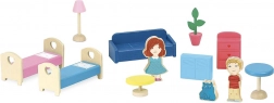 Součástí balení je soubor dřevěného nábytku a figurek, včetně postele, pohovky a malých zvířecích figurek. Děti tak mohou tvořit miniaturní domácí scény.