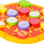 Plátky pizzy jsou spojeny na suchý zip, což umožňuje dětem je snadno rozdělit a znovu spojit.