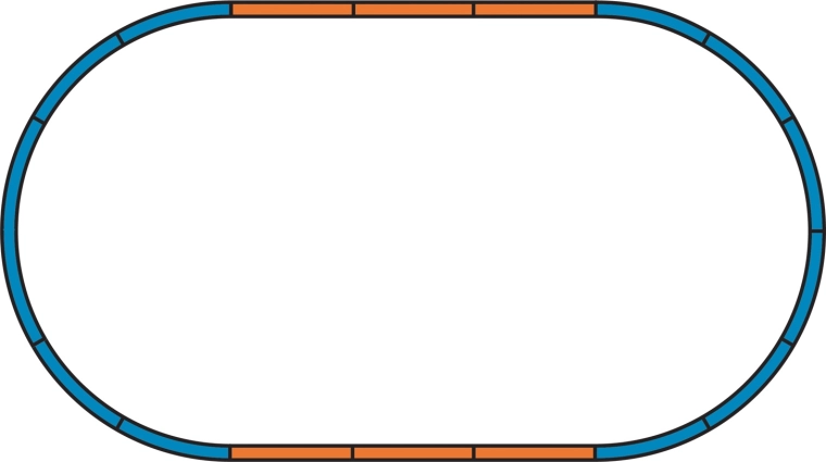 Základní ovál s minimálním poloměrem 358 mm sedne do menšího prostoru a lze jej kdykoliv rozšířit o další výhybky a díly.