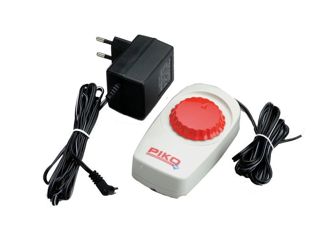 Dodávaný ovladač s napájecím zdrojem umožňuje plynulé řízení rychlosti a směru – ideální pro první jízdy i trénink jemné obsluhy.