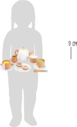 Tento krásně zpracovaný dětský čajový set umožňuje malým hostitelům a hosteskám obsluhovat své hosty s rozkošnými hrníčky, konvičkou a dalšími doplňky. Vysoká kvalita masivního dřeva zajišťuje robustnost a dlouhou životnost hraček, které jsou navrženy speciálně pro dětské ruce.