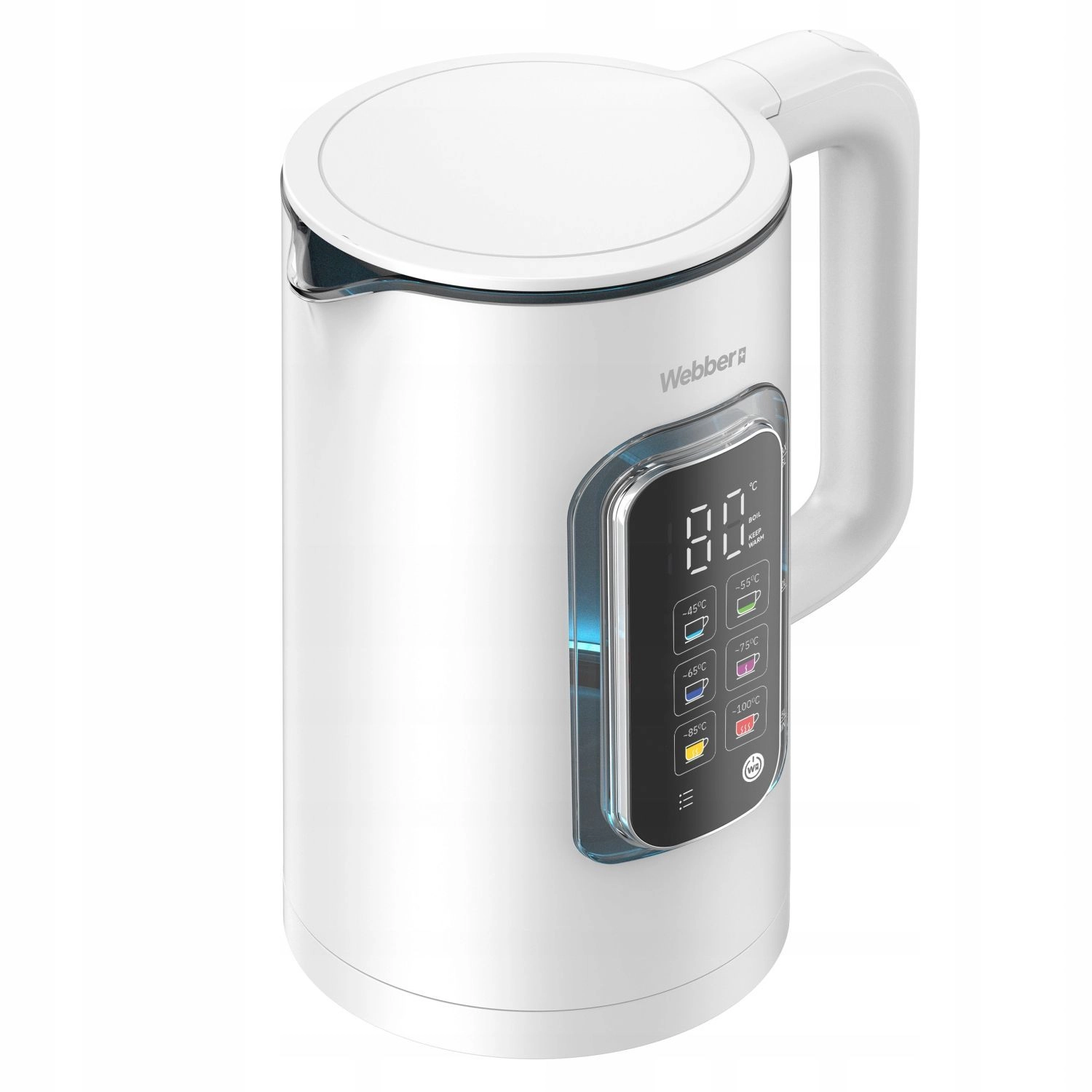 WEBBER ELIYA je moderní konvice navržená pro milovníky čaje i kávy, kteří vyžadují maximální kontrolu nad teplotou. Snadno si zvolíte ideální ohřev pro jemné čaje, kávu nebo nápoje pro děti. Skleněný interiér zachová čistou chuť vody a elegantní bílé tělo s podsvíceným displejem se hodí do každé kuchyně.