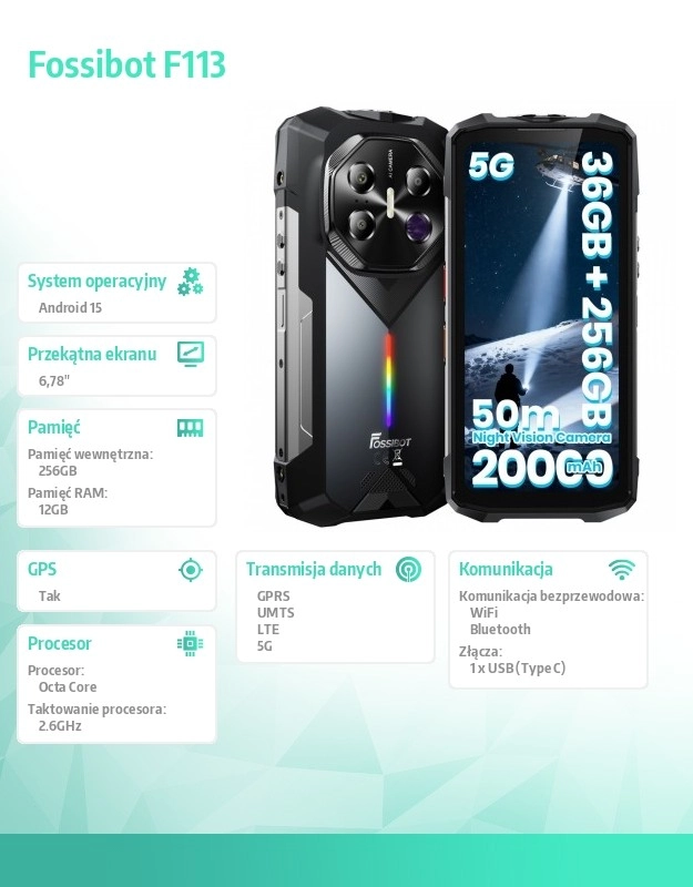Robustní chytrý telefon Fossibot F113 v elegantní šedé barvě nabízí spolehlivý výkon a moderní design pro každodenní použití. Oceníte jeho odolné zpracování, čistý displej a dlouhou výdrž, které z něj dělají skvělou volbu pro práci i zábavu.