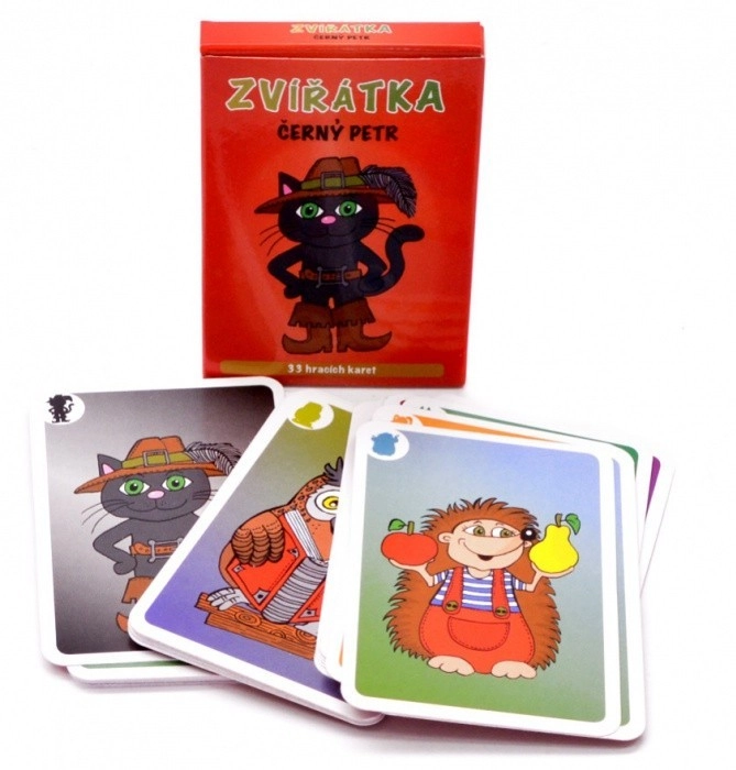 Oblíbená dětská karetní hra Černý Petr se zvířátky přináší jednoduchá pravidla, zábavu pro celou rodinu a rozvoj paměti a soustředění. Balení obsahuje 33 kvalitních karet o rozměru 6 × 9 cm; hráči hledají dvojice se stejným obrázkem a snaží se zbavit všech karet – prohraje ten, komu zůstane karta Černý Petr.