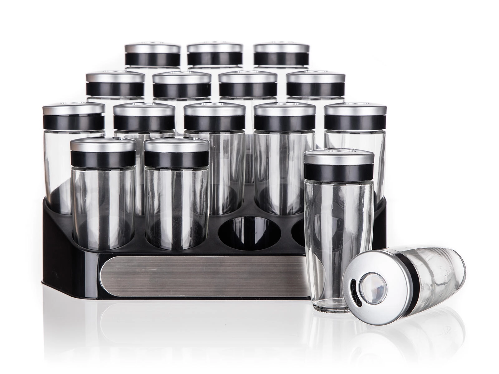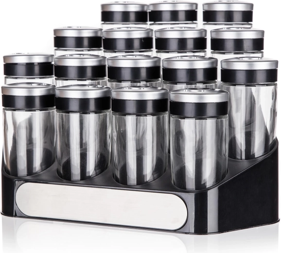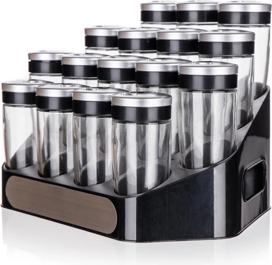 Udržte kuchyň přehlednou a stylovou se sadou kořenek ALTIMA – 16 skleněných kořenek (95 ml) na praktickém patrovém stojanu z ABS plastu. Každá kořenka má víčko se 3 nastavitelnými otvory (jemný, hrubý, univerzální) pro přesné dávkování koření. Průhledné sklo pro rychlou identifikaci, úspora místa a snadná údržba – skleněné části lze mýt v myčce.