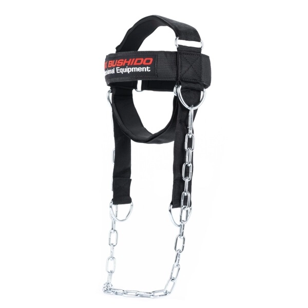 Profesionální postroj na krk DBX Bushido je ideální pro sportovce v bojových sportech, hokeji i silovém tréninku, kde hrají silné krční svaly klíčovou roli v ochraně hlavy a stabilitě. Robustní ocelový řetěz a zesílené švy zajišťují bezpečné cvičení i s vyšší zátěží.