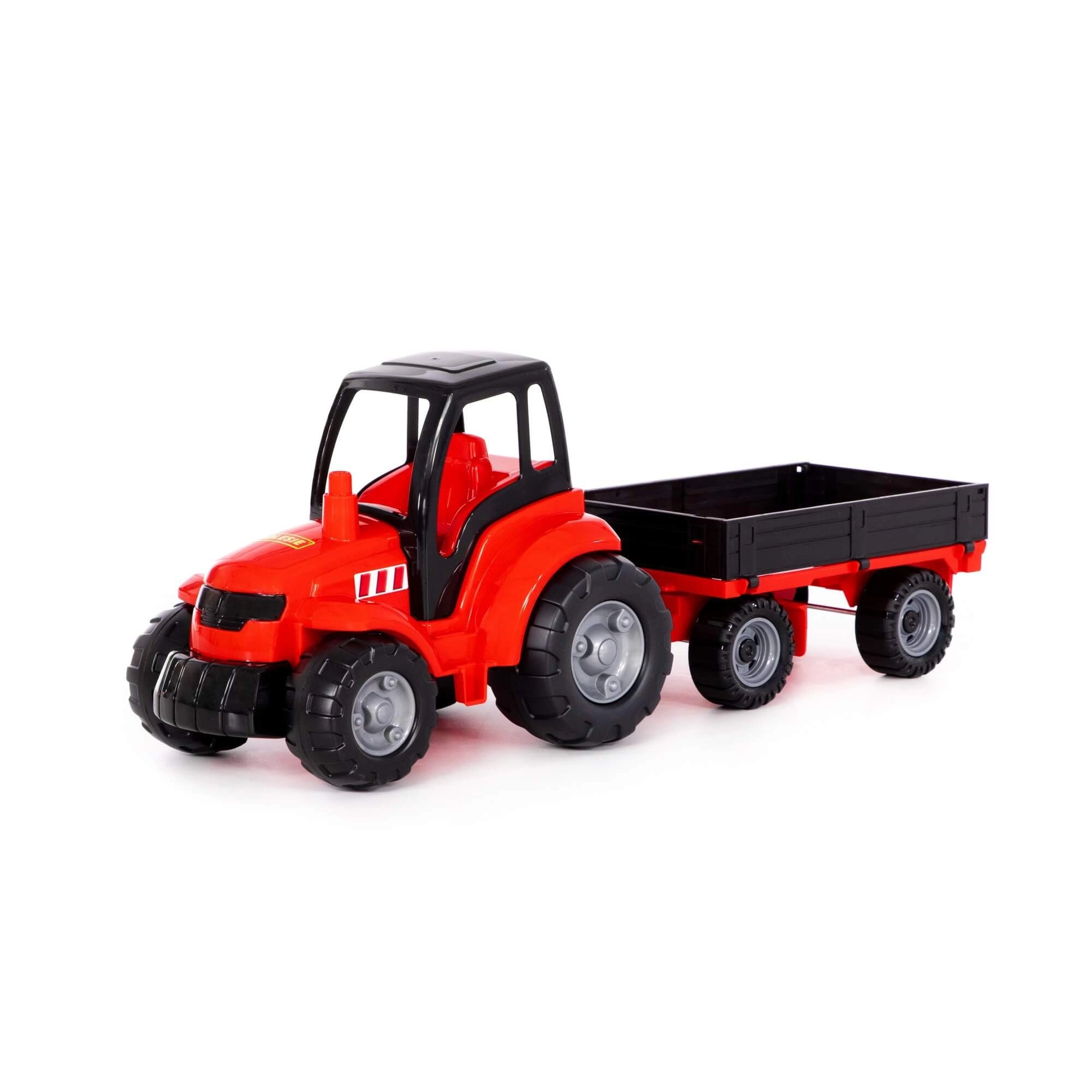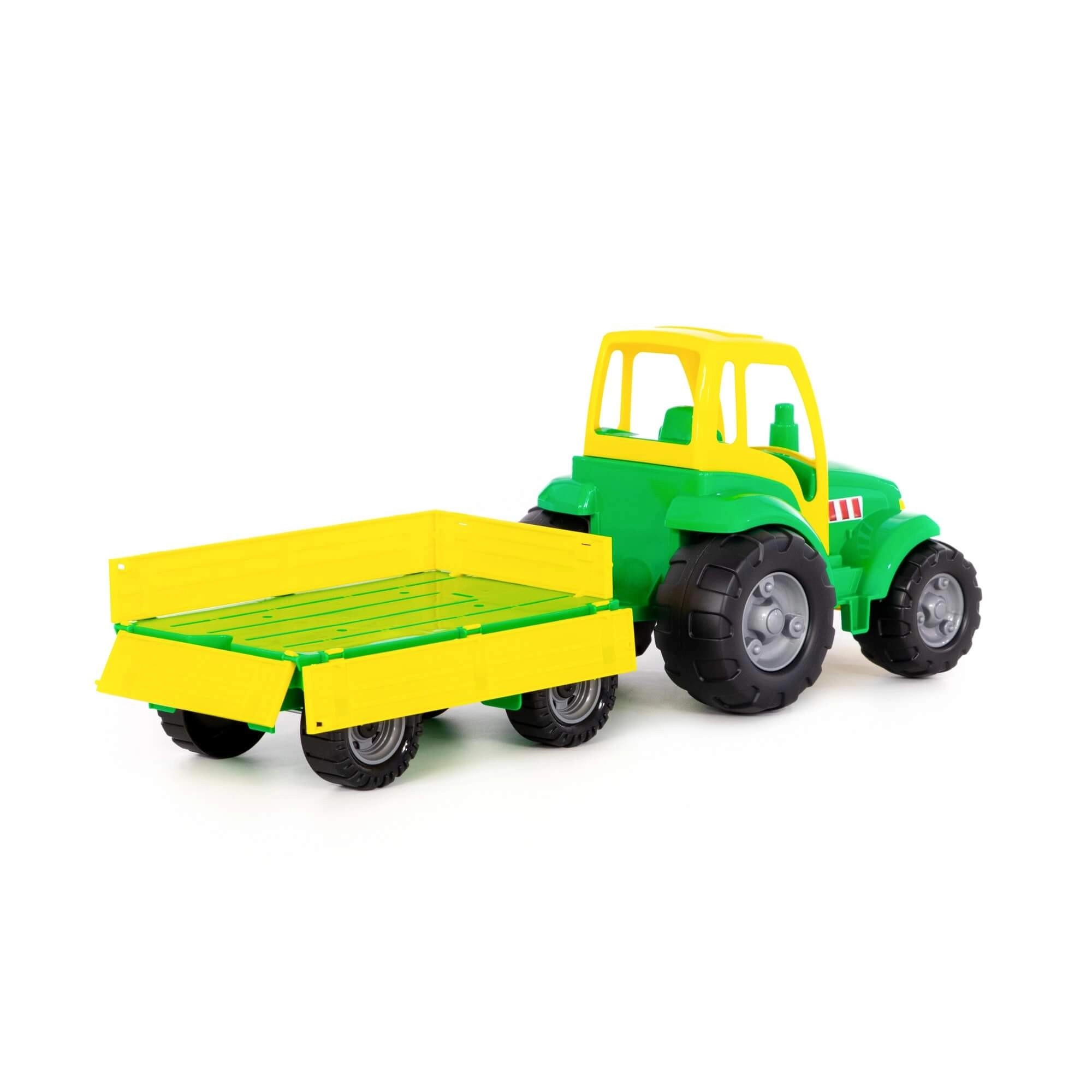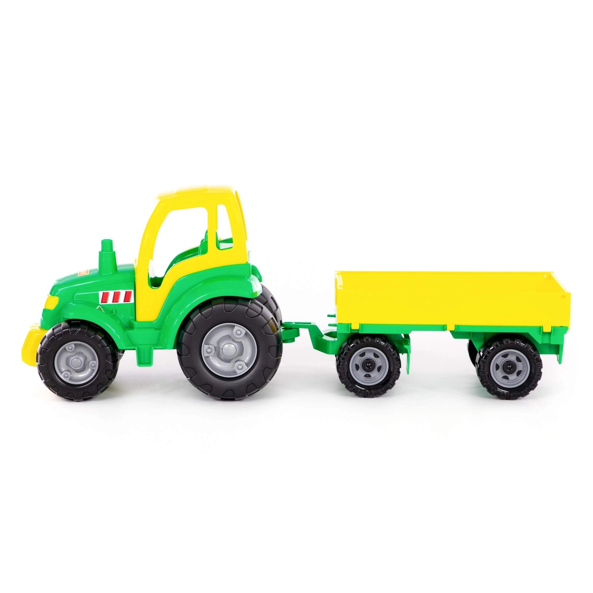 Dětský traktor s odnímatelným valníkem pro realistické hry na farmu. Odolná plastová konstrukce, volně se otáčející kola a snadné připojení/odpojení valníku podporují jemnou motoriku a kreativní hru doma i venku. Dostupný v několika barvách, cena za 1 kus.