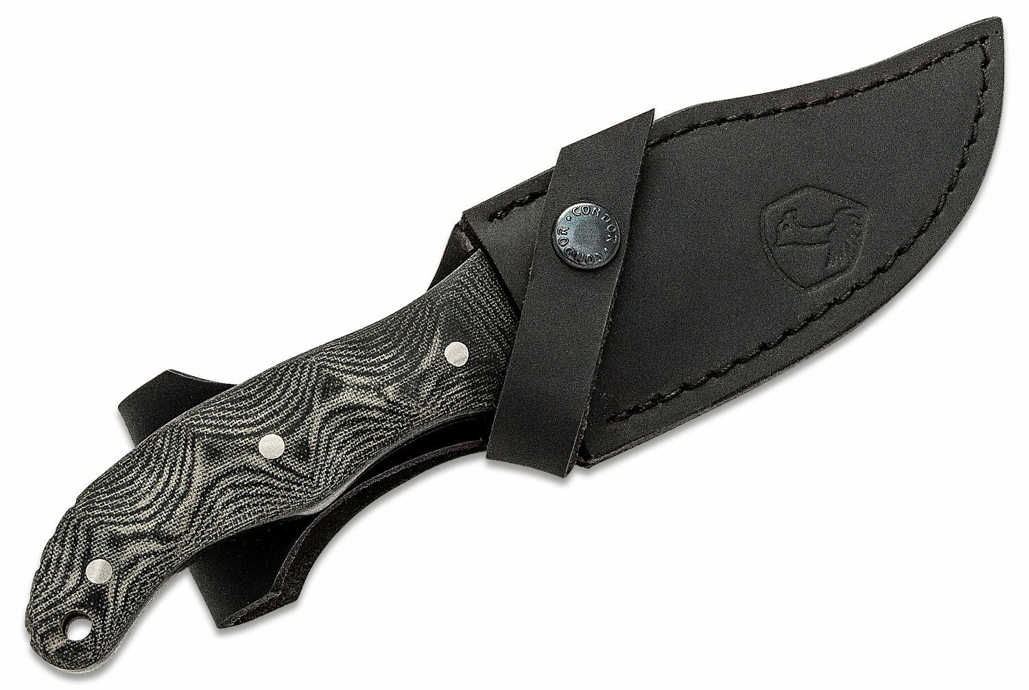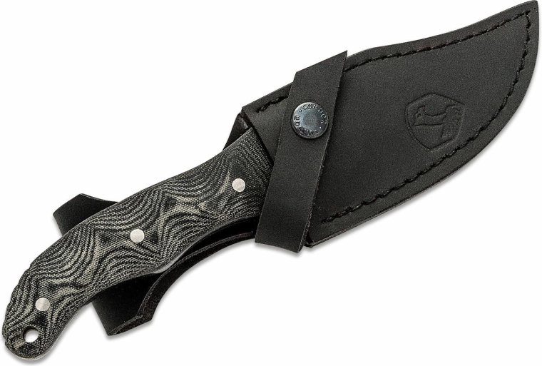 Konstrukce full-tang zajišťuje vysokou pevnost a dlouhou životnost. Tvarovaná rukojeť z Micarty v šedém provedení skvěle sedí v ruce i v rukavicích a nabízí jistý úchop za sucha i mokra. Kožené pouzdro umožňuje pohodlné a bezpečné nošení na opasku.