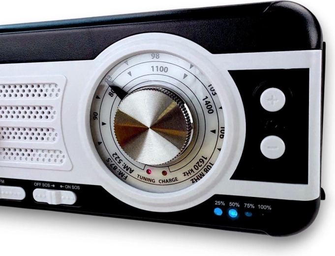 Pro čistý příjem stanic využijete indikátor ladění a otočnou teleskopickou anténu. Sluchátkový výstup umožní nerušený poslech, zatímco funkce powerbanky udrží v chodu váš telefon či jiné drobné zařízení. Kompaktní rozměry a nízká hmotnost jsou jako stvořené pro kempování, túry i domácí nouzovou výbavu.