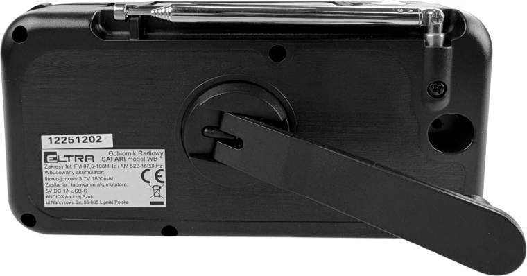 Kompaktní přenosné rádio SAFARI WB-1 kombinuje spolehlivý příjem pásem UKV a středních vln, ruční dynamo pro nouzové dobíjení, vestavěnou LED svítilnu, solární panel a funkci powerbanky pro nabití telefonu. Ideální do přírody, na kempování i do krizových situací, kdy oceníte SOS alarm, sluchátkový výstup a otočnou teleskopickou anténu pro lepší příjem.