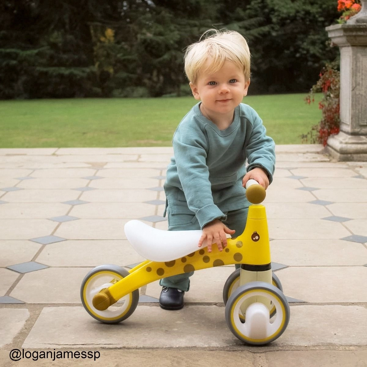 Veselý motiv žirafy motivuje děti k pohybu a promění učení rovnováhy v hravou zábavu doma i venku.