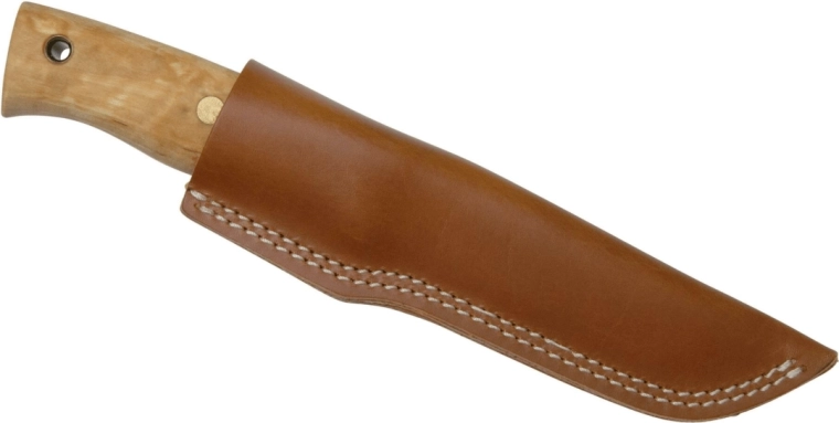 Rukojeť z jednoho kusu kudrnaté břízy je ručně broušená, leštěná a olejovaná, takže skvěle padne do ruky a každý kus má jedinečný vzhled. Součástí balení je kvalitní kožené pouzdro pro bezpečné a pohodlné nošení u opasku.