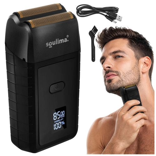 Užijte si důkladné holení bez podráždění s kompaktním strojkem SOULIMA. Dvojitá fólie a dvě ostrá nerezová ostří zachytí krátké i delší vousy, zatímco LED displej vás udrží v obraze o zbývající kapacitě. Díky USB‑C nabíjení a odolné konstrukci je ideální do koupelny i do cestovní tašky.
