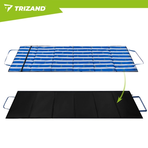 Užívejte si pohodlí i na kamenité pláži díky podložce TRIZAND s tloušťkou 1 cm, voděodolnou izolací a skládací konstrukcí. Lehká a praktická, s úchopem a gumičkou pro snadné nošení – ideální na dovolenou, k vodě i na výlety.