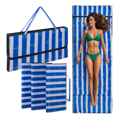 Podložka ve velikosti XXL poskytuje dostatek prostoru pro relax. Je lehká a skladná, vybavená praktickým uchem a zajišťovací gumičkou pro kompaktní sbalení. Spolehlivá volba pro pláž, kemping, piknik i zahradu.