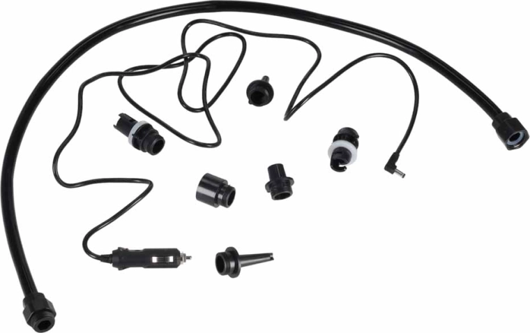 6× výměnná koncovka, 1× napájecí kabel 12 V DC, 1× hadice se spojkami A a B