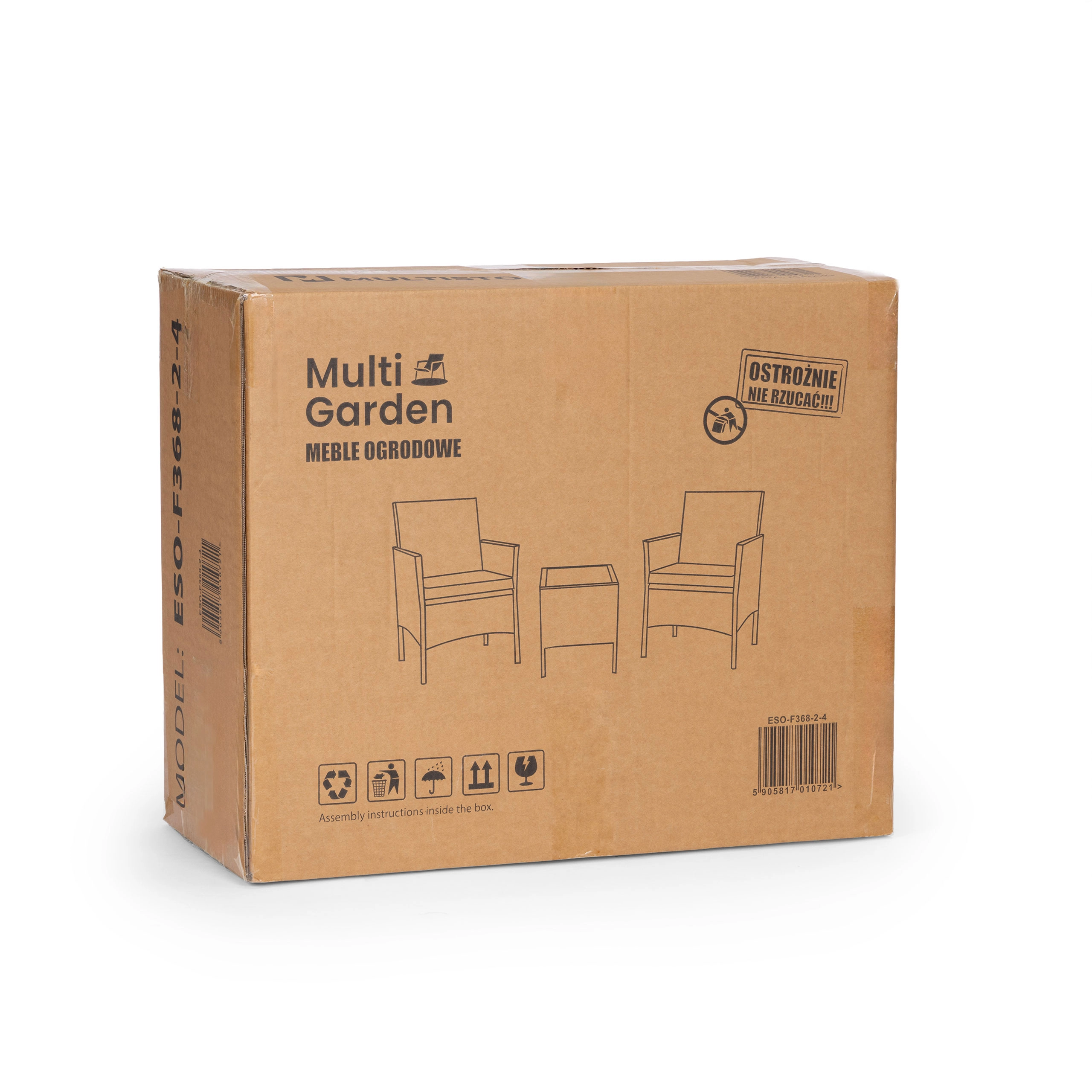 Stylový zahradní set pro 2 osoby od MultiGarden kombinuje odolnou ocelovou konstrukci a technoratan se zpevněným sklem na stolku. Součástí jsou 2 pohodlná křesla s poduškami z polyesteru 160 g/m². Nábytek je odolný vůči povětrnosti, snadno se čistí a perfektně se hodí na terasu, balkon i zahradu.