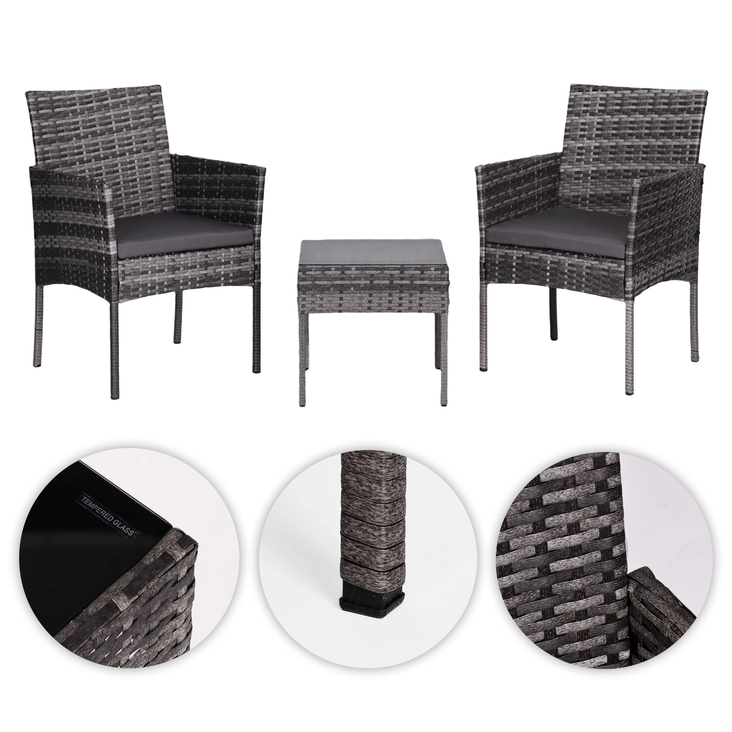 Zahradní set z technoratanu pro 2 osoby s křesly a stolkem, šedý, MultiGarden
