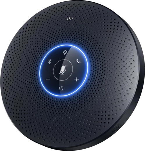 Profesionální konferenční reproduktor pro střední až velké místnosti s 360° snímáním hlasu do 5 m, čtyřmi mikrofony, technologií VoiceIA® pro potlačení šumu a čistým, hlasitým zvukem 89 dB. Nabízí USB‑C i Bluetooth 5.0, připojení až 2 zařízení bezdrátově současně a možnost řetězení dvou jednotek pro větší porady. Plug & play kompatibilita se službami Zoom, Microsoft Teams či Webex.