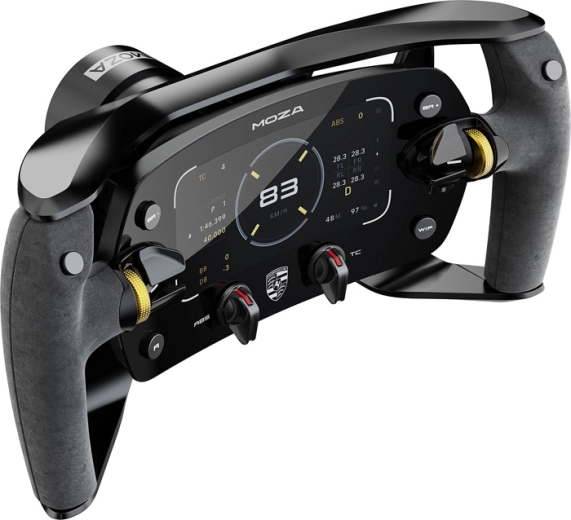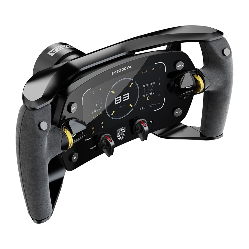 Plně CNC obráběný hliníkový rám s ergonomickými úchopy ze semišové kůže poskytuje jistotu a komfort při dlouhých stintách. Magnetická pádla s Hall senzory a podporou jednoduché i dvojité spojky umožní precizní starty i řazení. Díky otevřenému ekosystému a rychloupínání je volant připraven na všechny základny MOZA a přes rozbočovač i na platformy třetích stran.