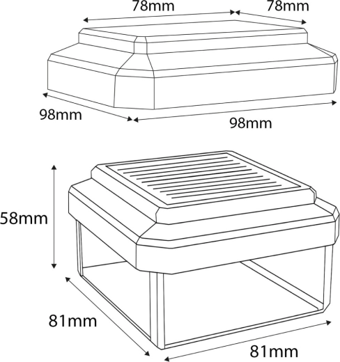 Čtvercová čepička dokonale sedí na sloupky a dodá vjezdu či zahradní brance bezpečné nasvícení a reprezentativní vzhled.