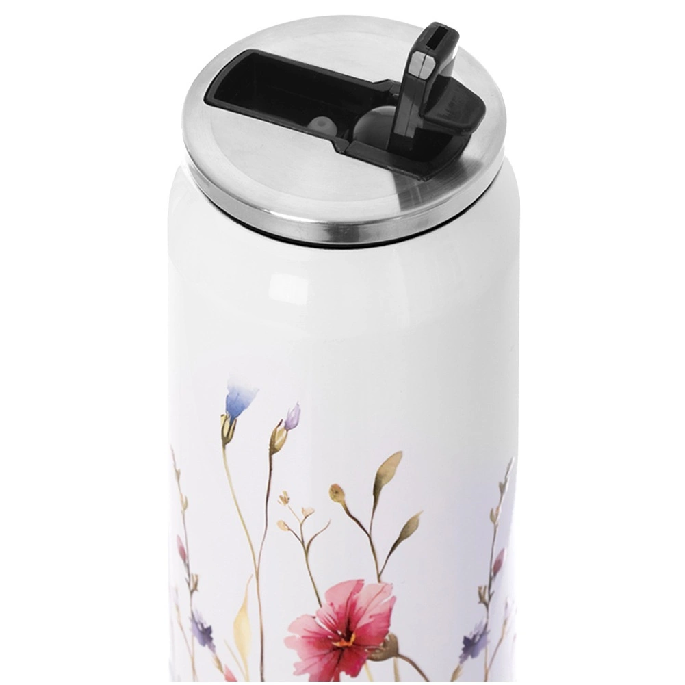 Díky kvalitnímu těsnění je hrnek výjimečně nepropustný, takže ho můžete dát do kabelky, batohu či kufru. Přednaplnění horkou nebo studenou vodou na 5 minut ještě více prodlouží tepelný efekt. Elegantní bílý povrch s květinovým motivem dodá vašemu pitnému režimu šmrnc po celý rok.