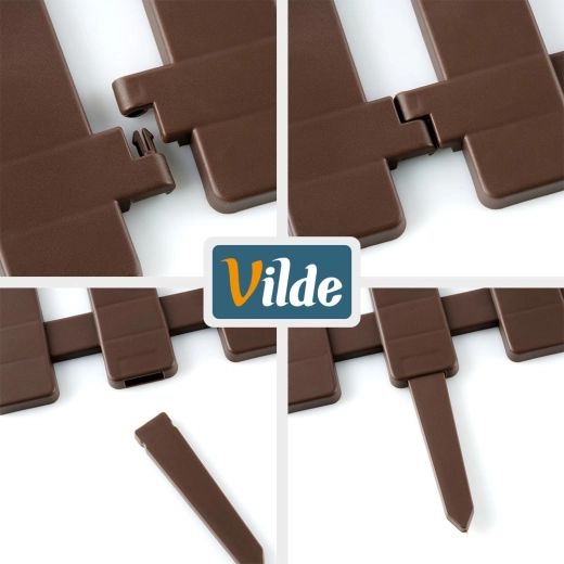 Praktický zahradní plůtek v hnědé barvě pro čisté oddělení záhonů, trávníků a cestiček. Sada 4 panelů o rozměru 49 × 21 cm s kolíky pro pevné ukotvení a propojovacími zámky umožňuje vytvořit okraj v délce až 195 cm. Odolné UV stabilní a mrazuvzdorné provedení pro dlouhou životnost.