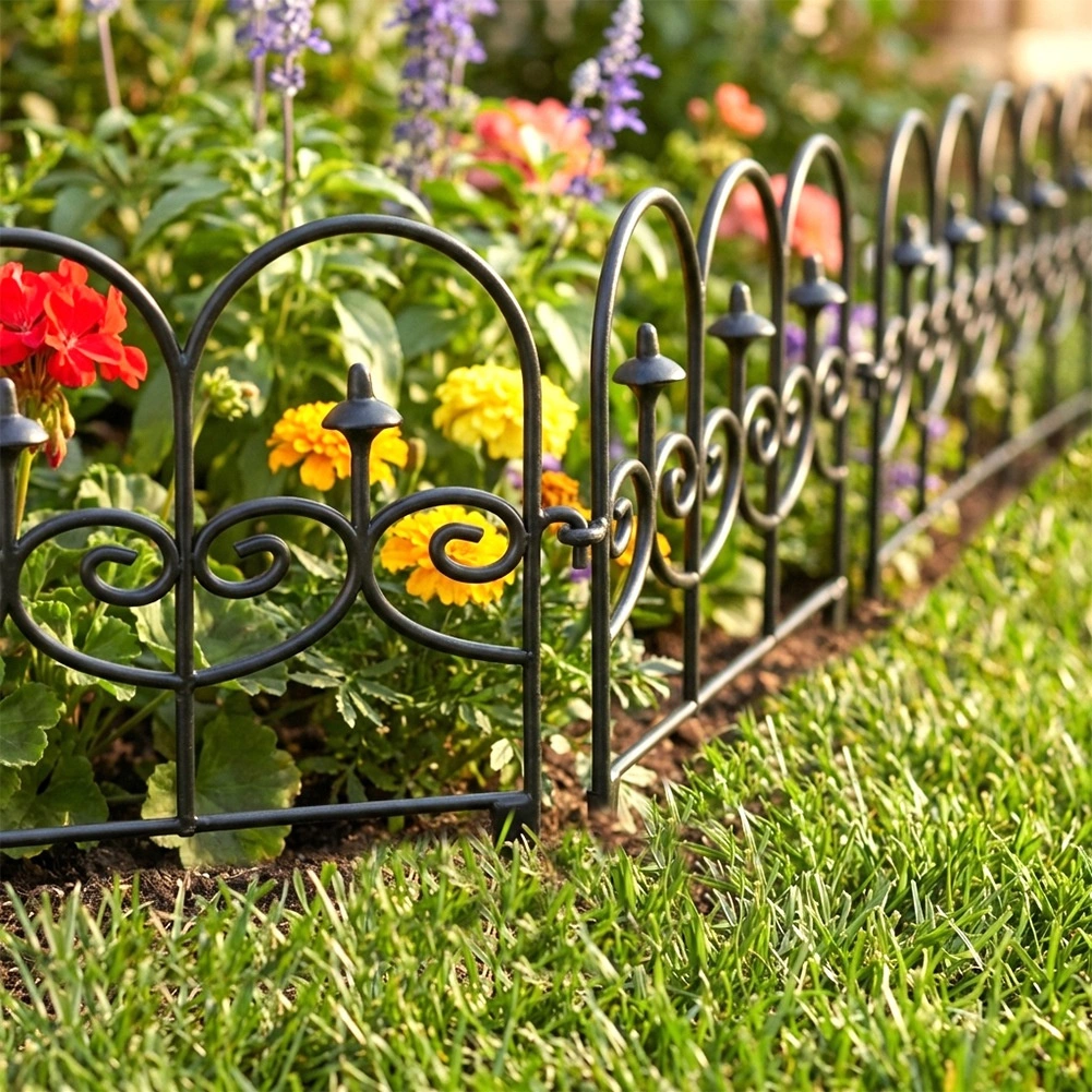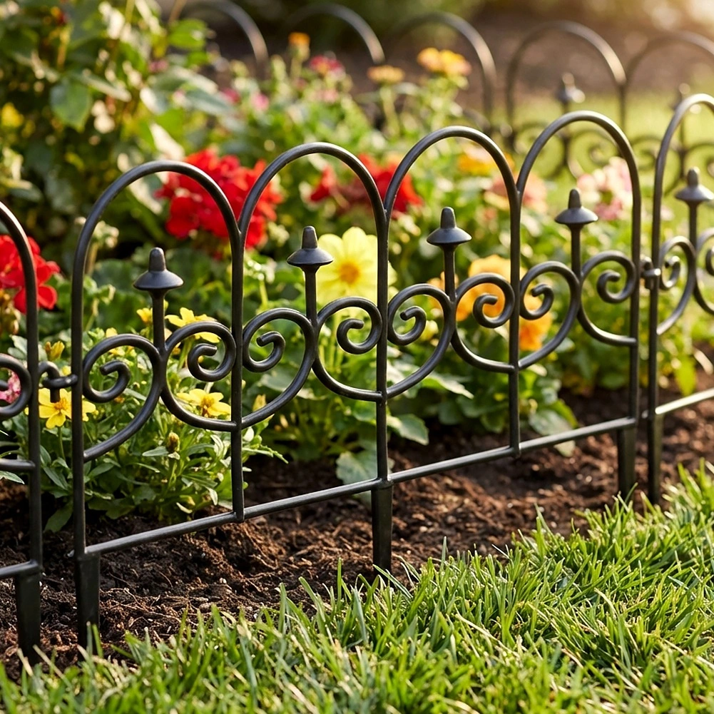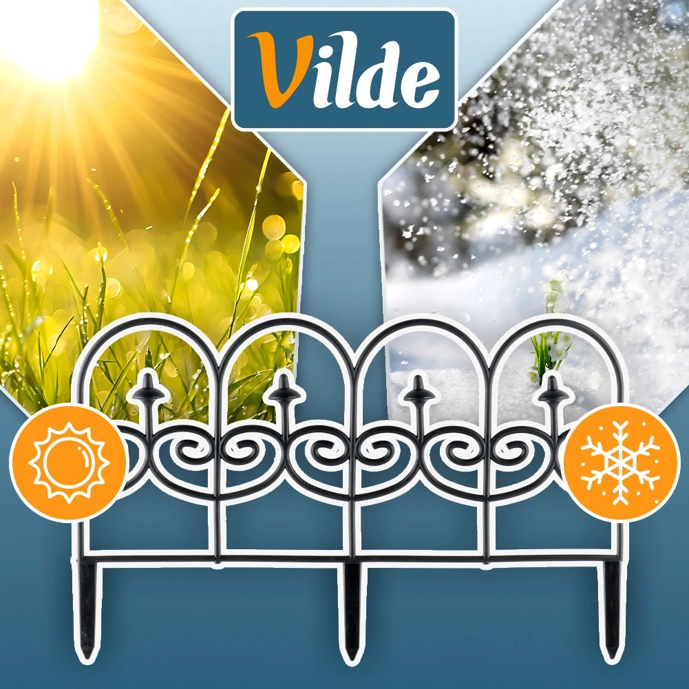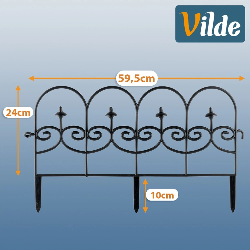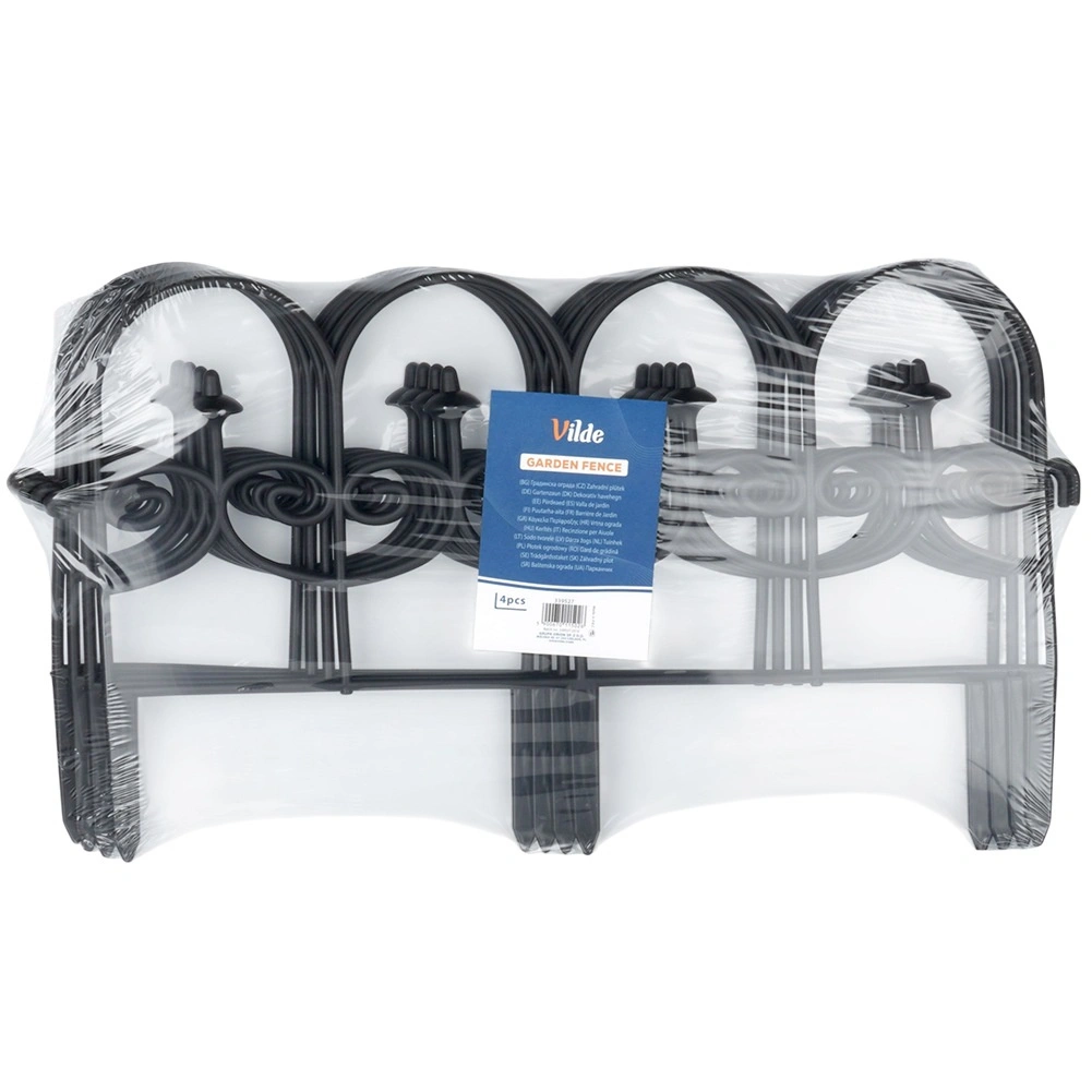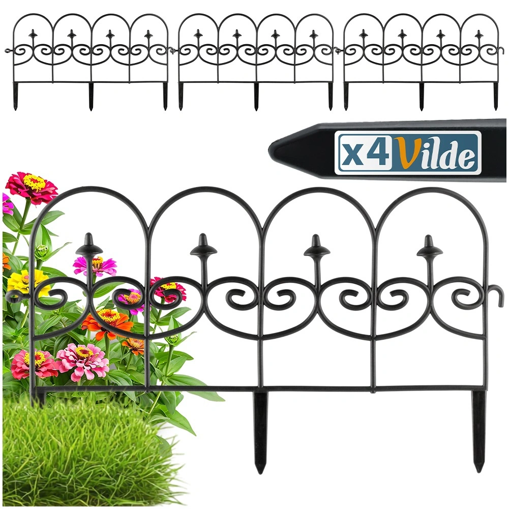 Sada čtyř dekorativních zahradních plůtků v černé barvě umožní rychle a úhledně oddělit záhony, trávník i cesty. Každý panel má délku 59,5 cm a výšku 24 cm (34 cm včetně kotev), takže v přímé linii vytvoříte celkovou délku 238 cm. Plůtky jsou z odolného materiálu, snadno se instalují pomocí tří kotvících hrotů a můžete je mezi sebou libovolně propojit do požadovaného tvaru a délky. Díky odolnosti vůči mrazu, UV záření a dešti jsou ideální pro celoroční použití a zajistí čisté linie záhonů i ochranu rostlin.